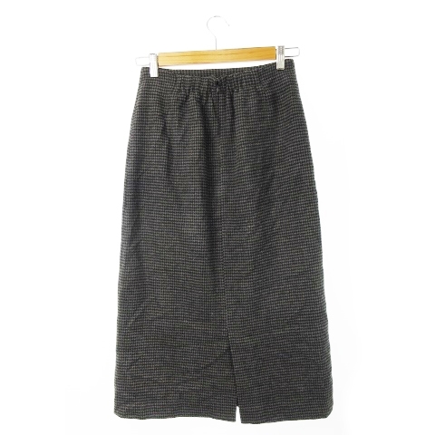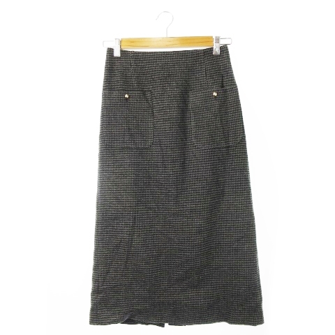 テチチ Te chichi スカート フレア ミモレ ロング ウール混 ふんわり ツイード ワーク 金ボタン 千鳥格子 M グレー /CK23 レディース