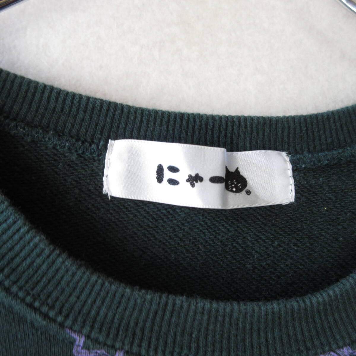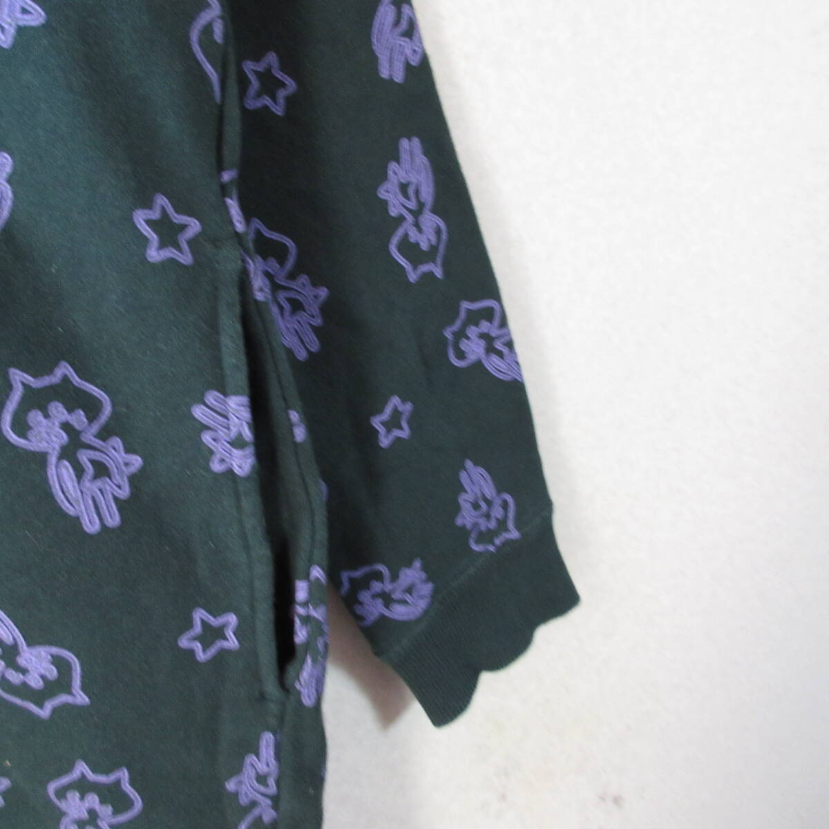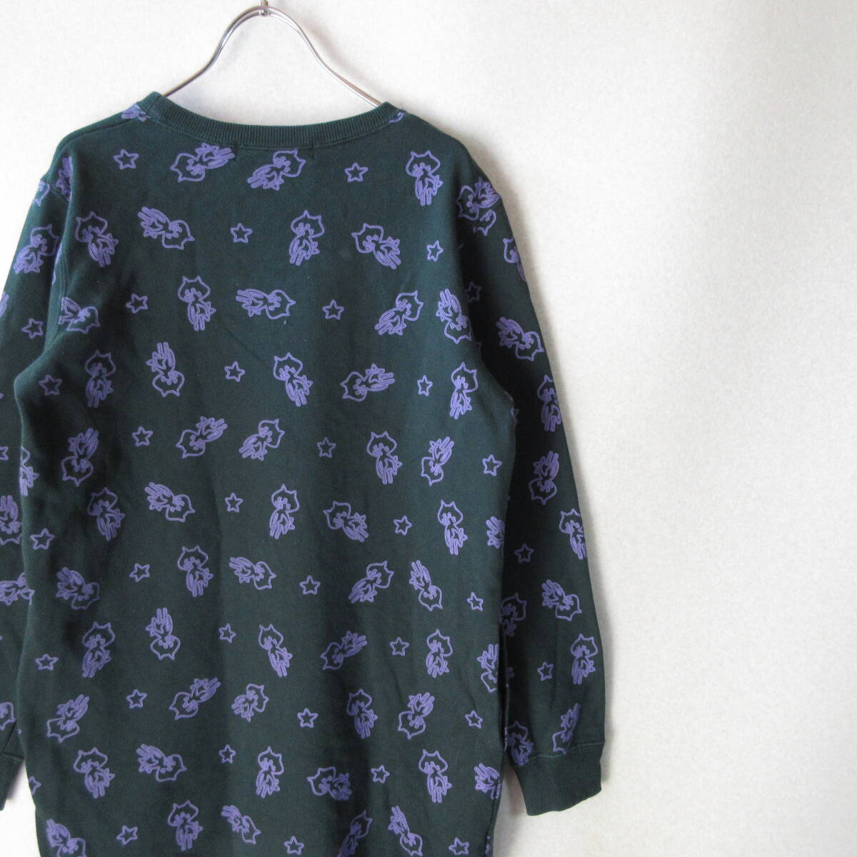 ○良品 にゃー エイネット◆スウェット トレーナー チュニック丈 総柄 プリント◆レディース グリーン サイズ2