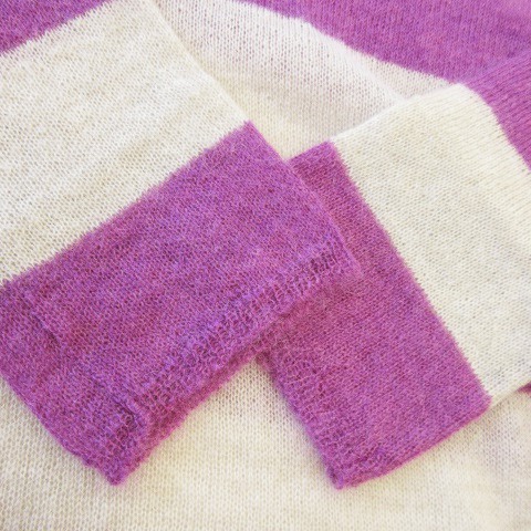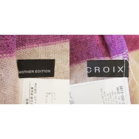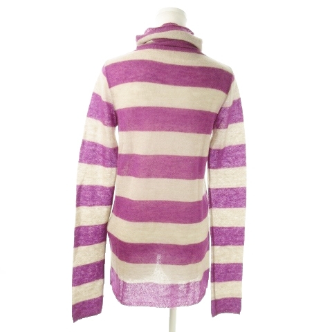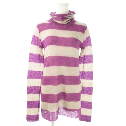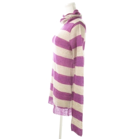 アナザーエディション クロア ANOTHER EDITION CROIX ニット セーター ハイネック 長袖 モヘヤ混 ウール混 起毛 ボーダー 透け感 紫