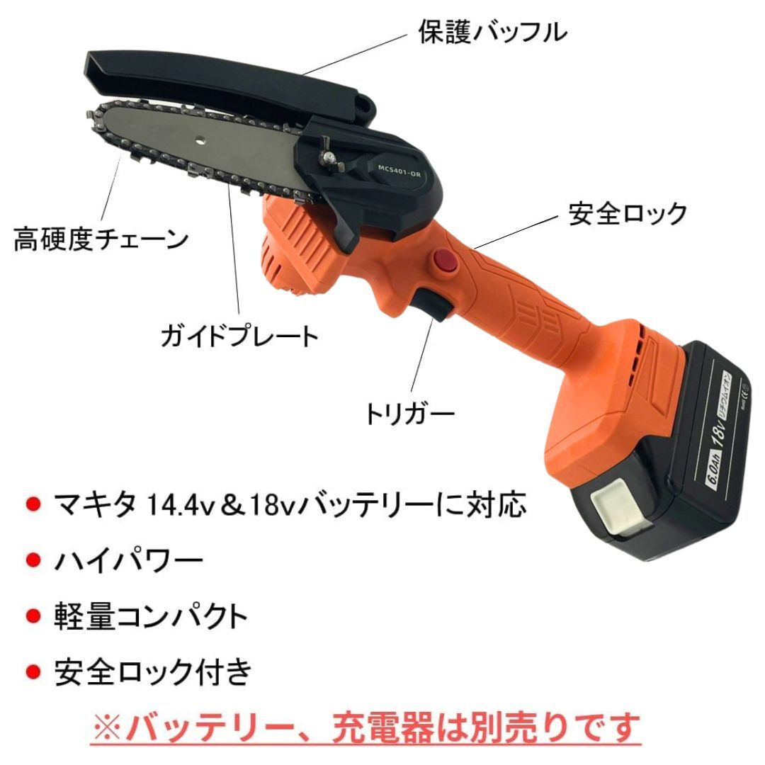(A) マキタ 互換 チェーンソー オレンジ18V 14.4V※ バッテリー、充電器 別売