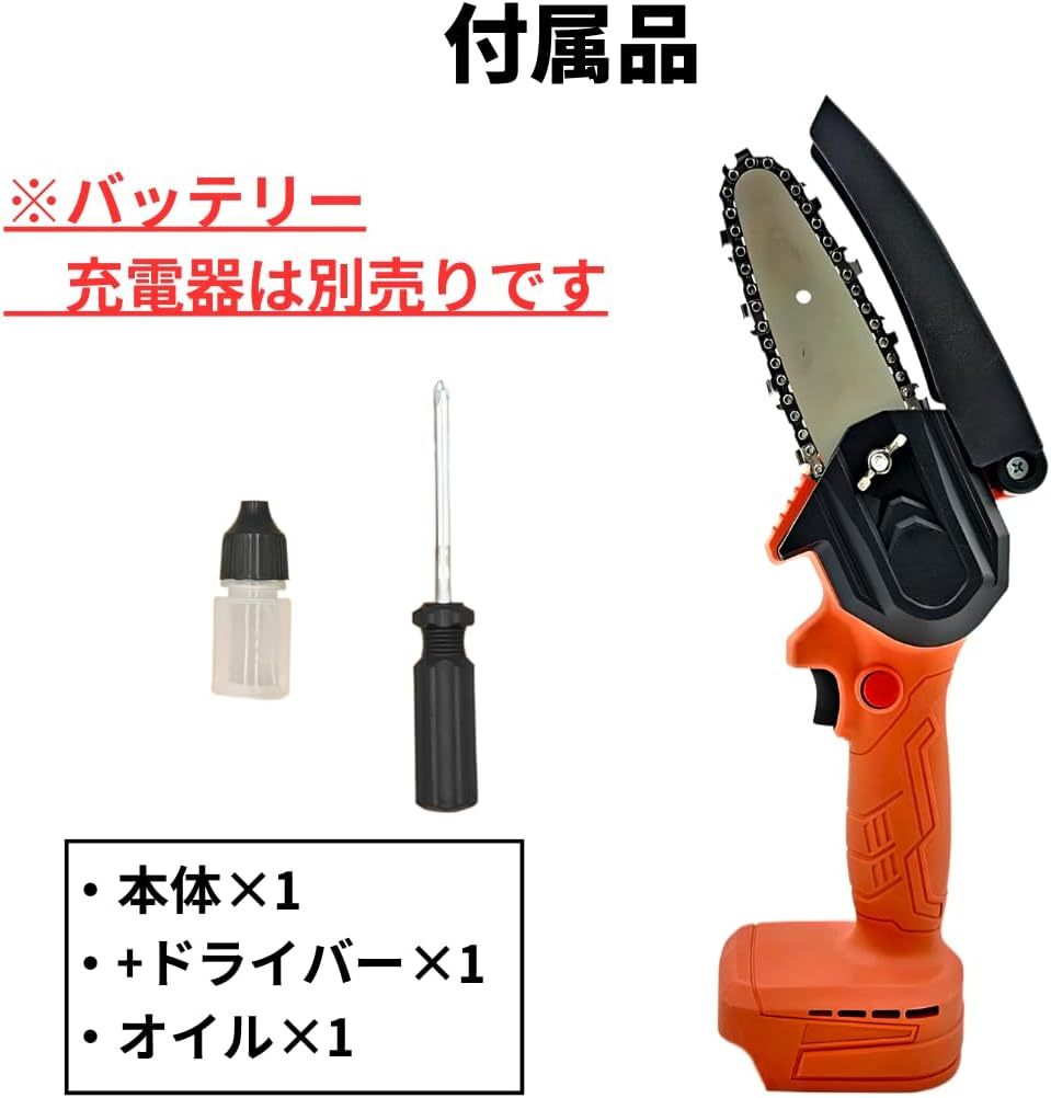 【用途】小型チェーンソーは小型で持ち運びが簡単で、電源コードや電源がない場所でも使用できます。
