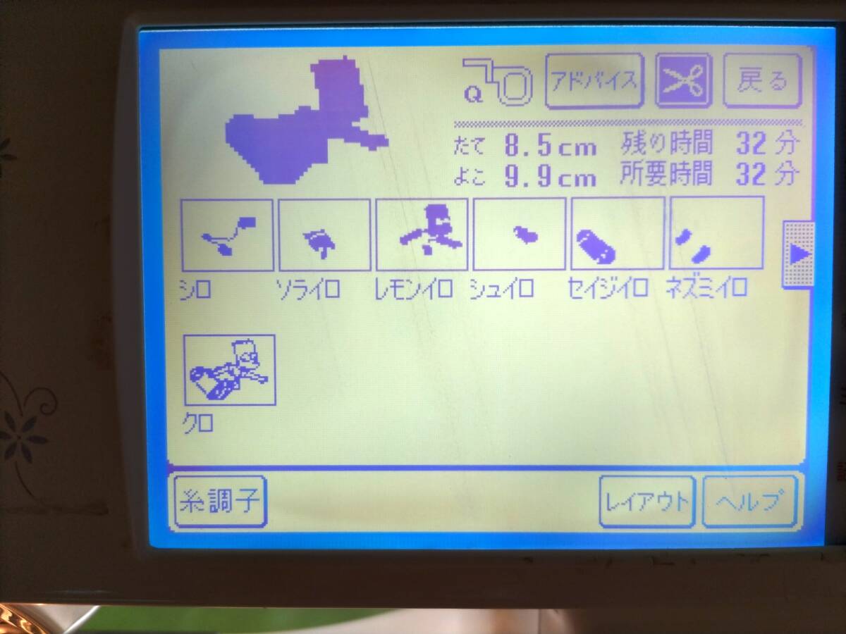 それ以外は参考で、8枚目は自宅ミシンで読み込んだ写真、9,10枚目はミシン読込画面のアップです。