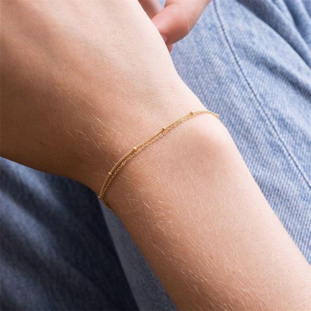 繊細な加工のチェーンが特徴のエピチェーンは凛としたエレガントさがあり、2連でさりげなく存在感のあるデザインがお洒落を演出します。