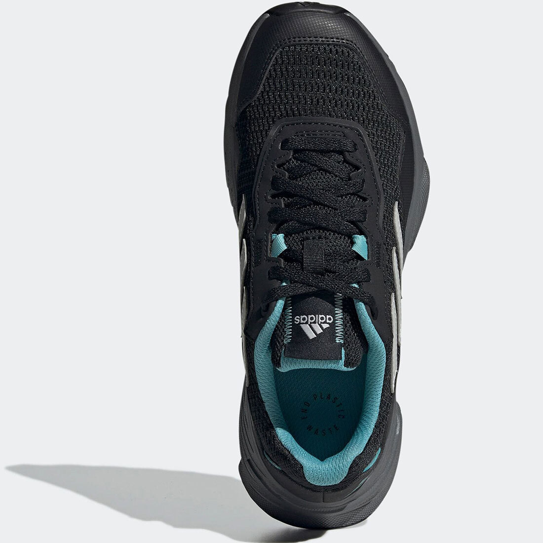 全方向に対するグリップ力を発揮するTraxionアウトソールを搭載した、険しいトレイルを進むランナーの足取りをサポートする、アディダス トレイルランニングシューズ。