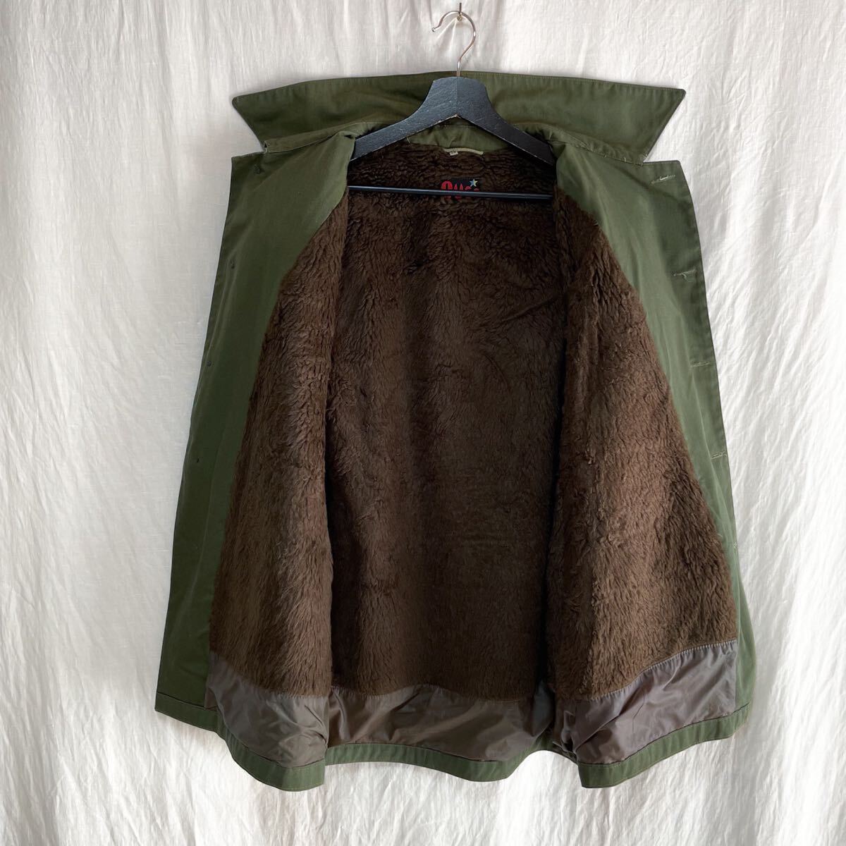 右肩にパッチ、裏地は総ボア、袖裏はナイロンに切り替わっており防寒性のある1着です。