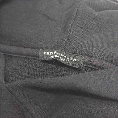 ◇ ⊇ earth music&ecology アース ミュージック&エコロジー 綿 長袖 パーカー サイズF ブラック レディース E