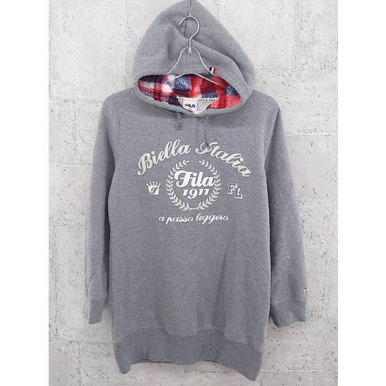 ◇ FILA フィラ プリント 長袖 プルオーバーパーカー M グレー オフホワイト #