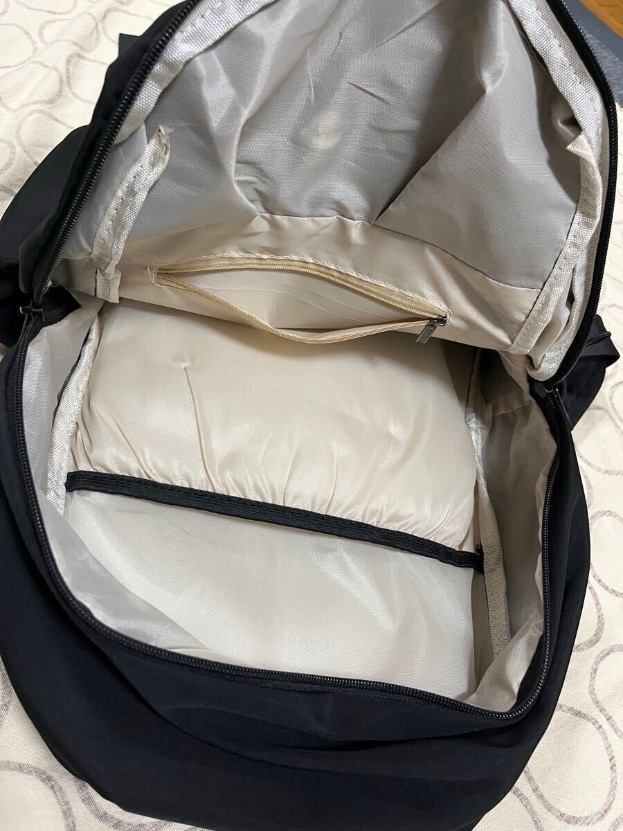 バッグ内側には背中部分にスポンジクッションいりの大きなポケットがついています。