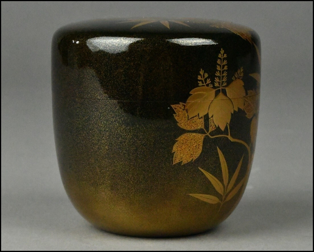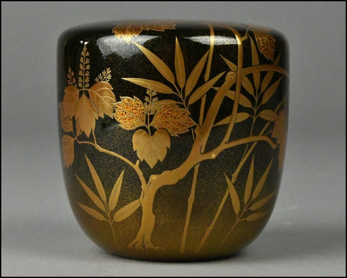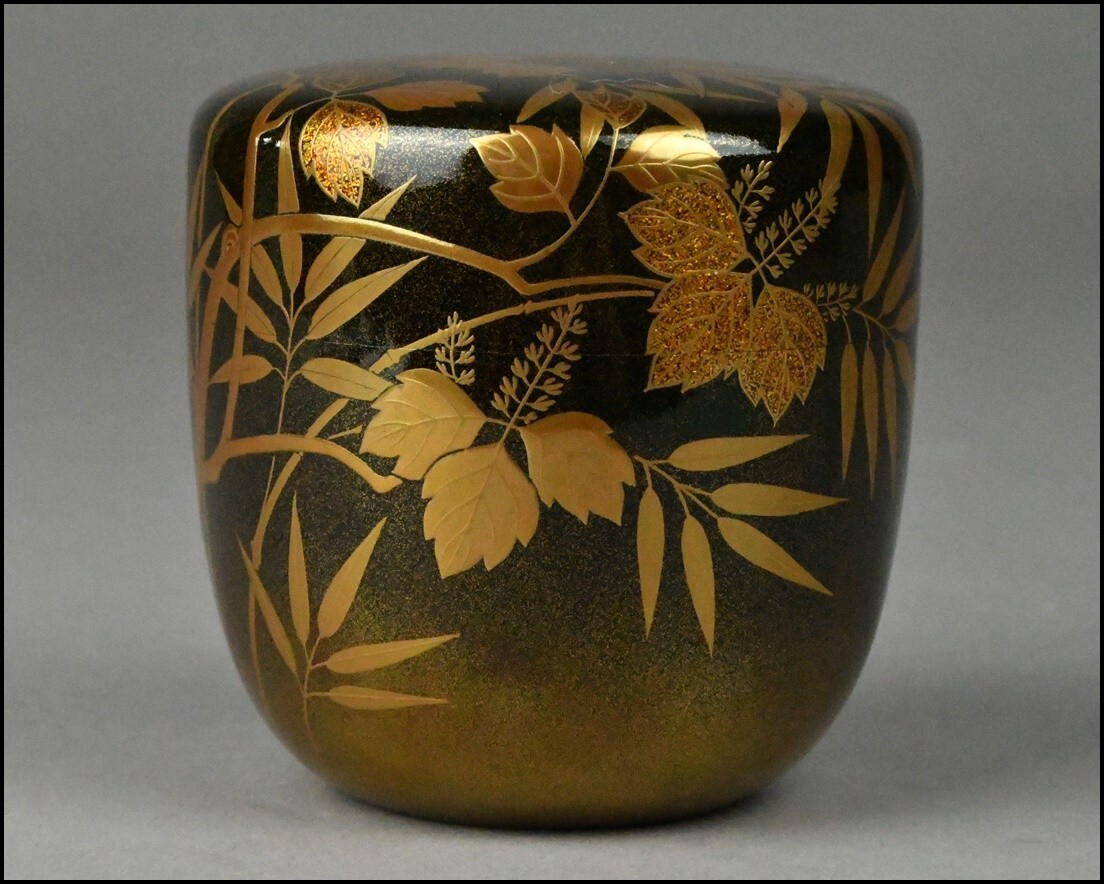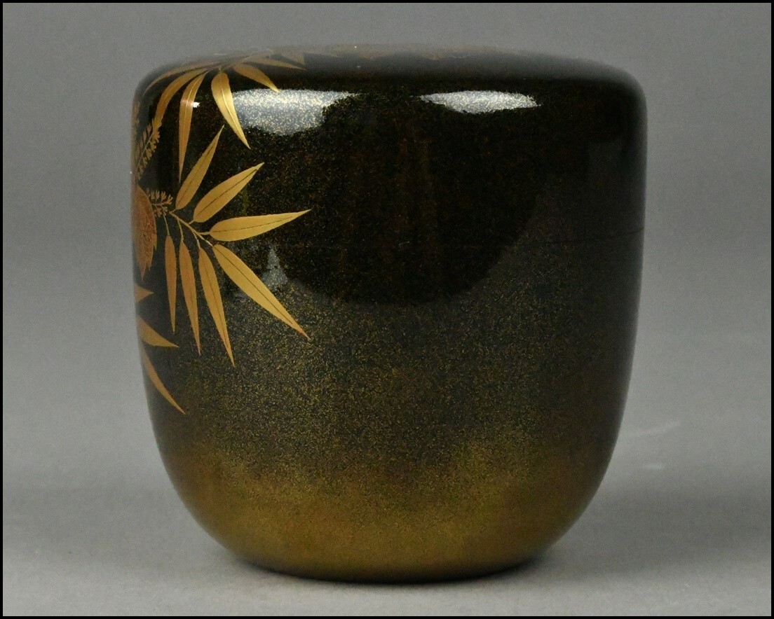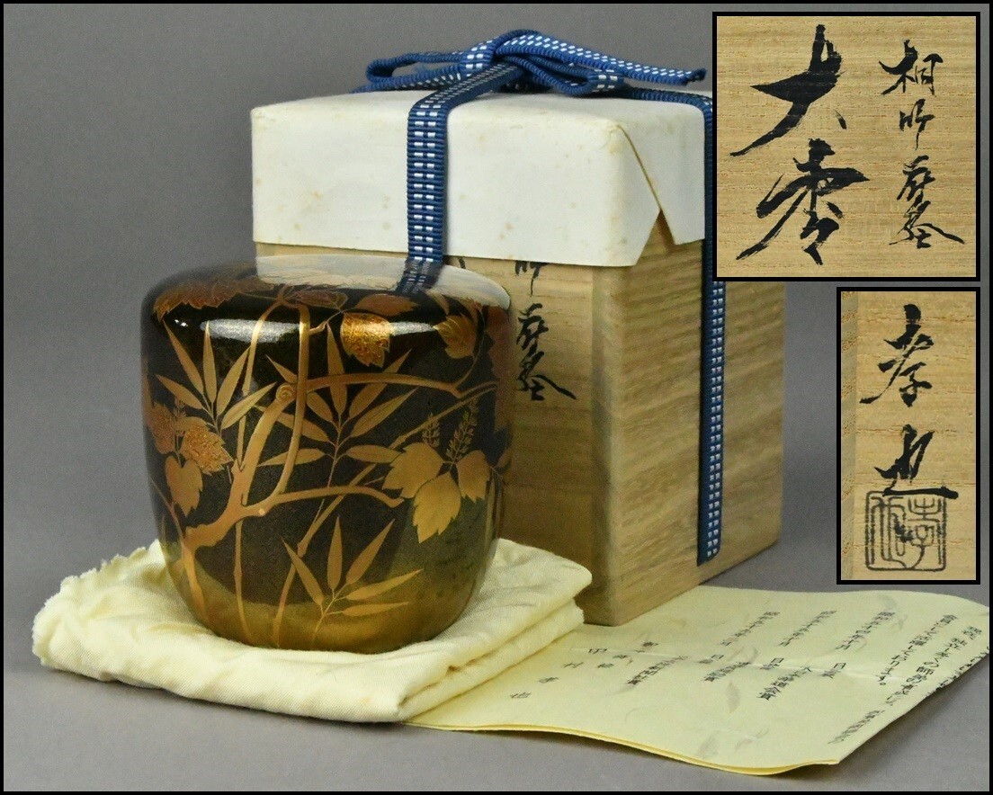 商品説明+++《品 名》:加賀蒔絵師【中村孝也】桐竹蒔絵 大棗 布付 共箱 茶道具
