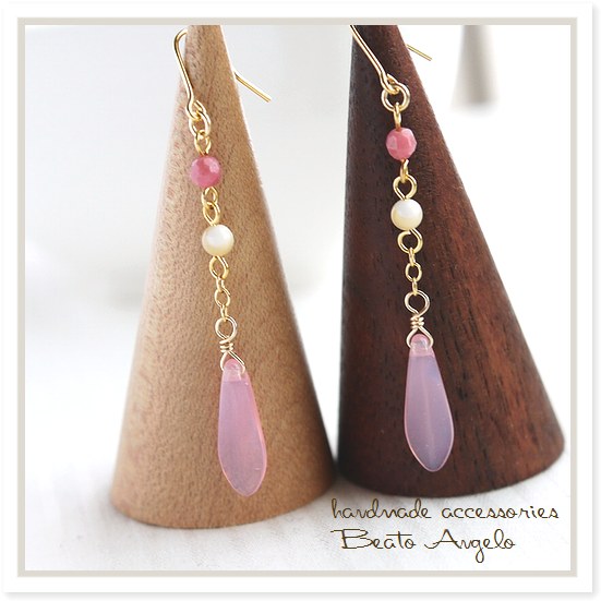 チェコダガーとロードナイトのピアス(p-088)オパールピンク G