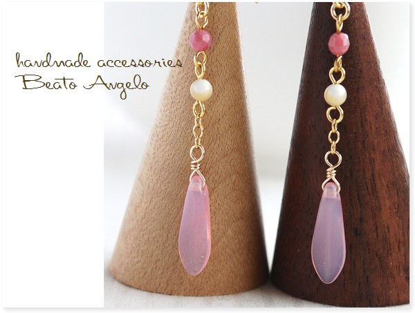 ◇◆+angelo+チェコダガーとロードナイトのピアス(p-088)オパールピンク G マザーオブパール 天然石 チタン 樹脂 イヤリング