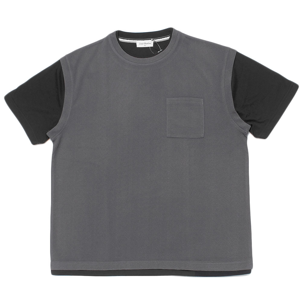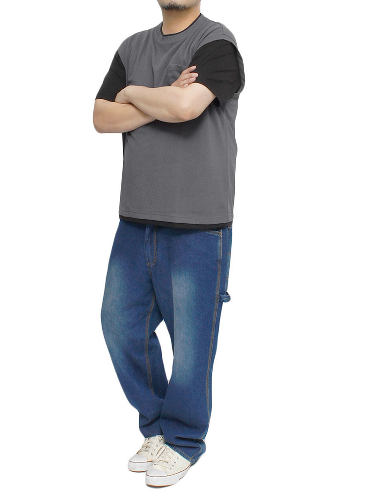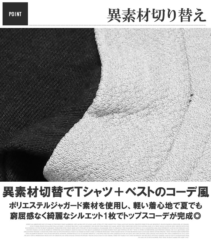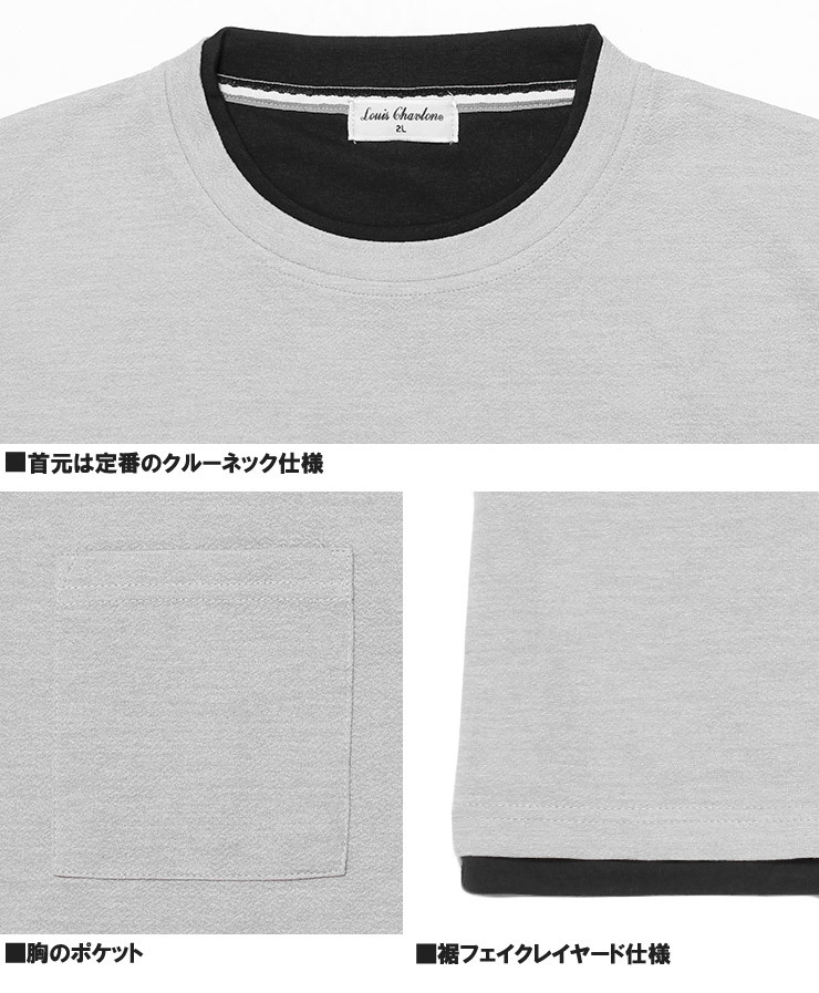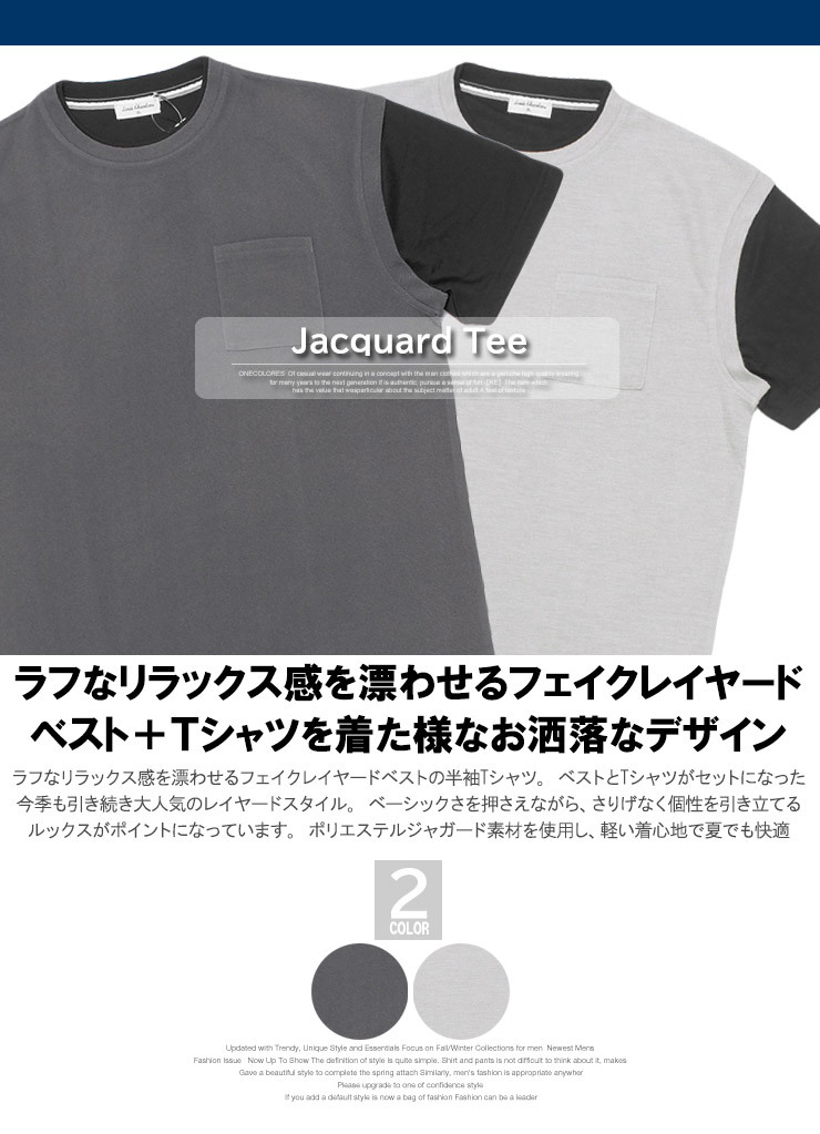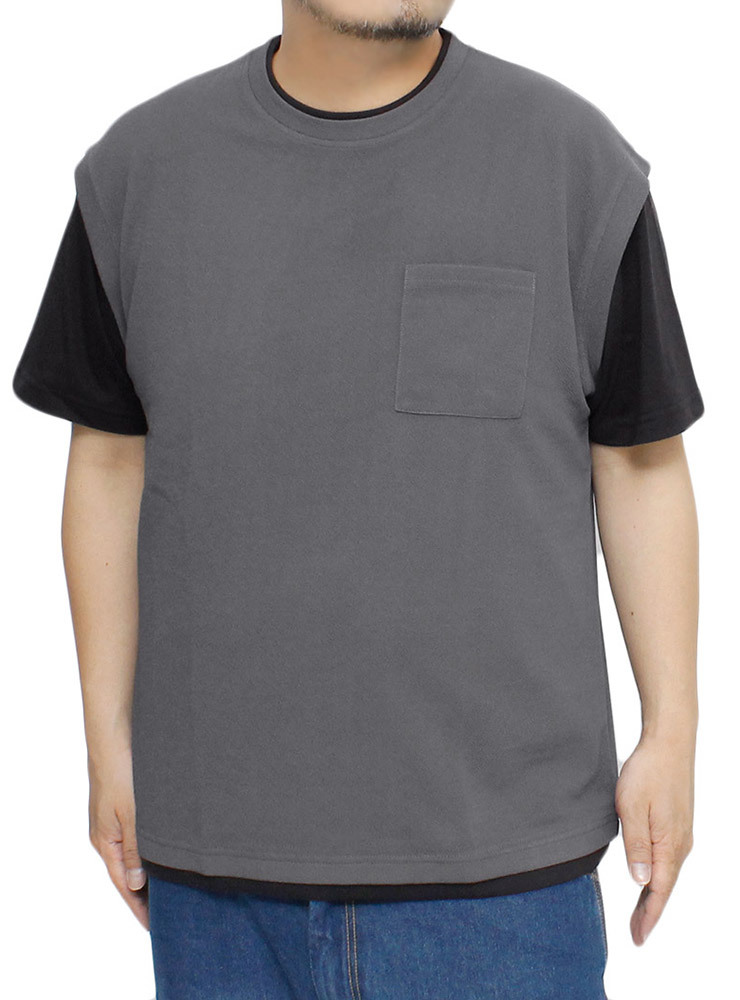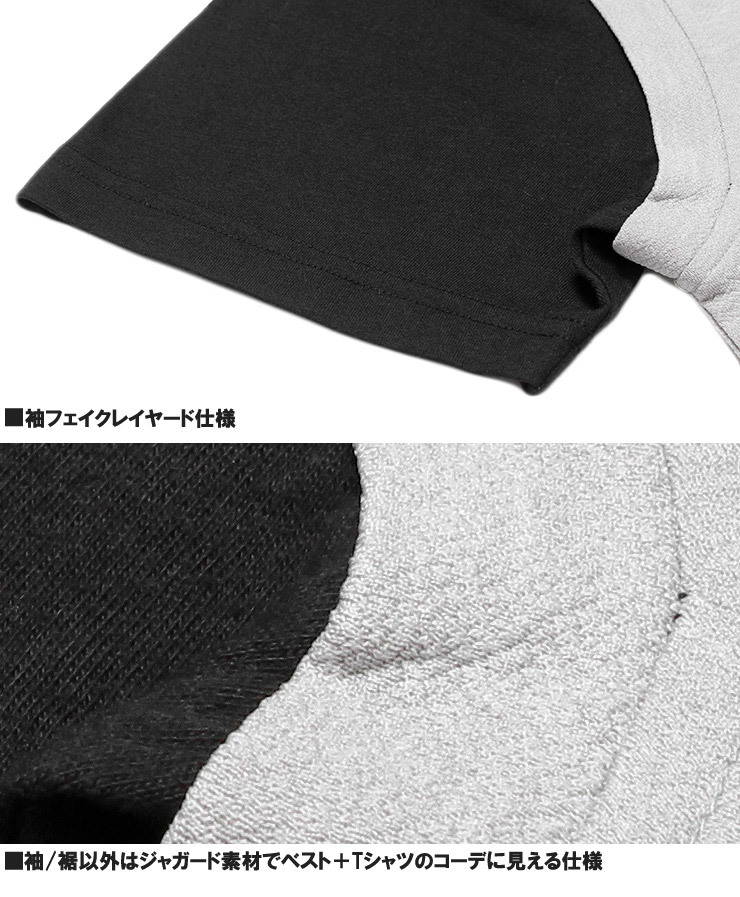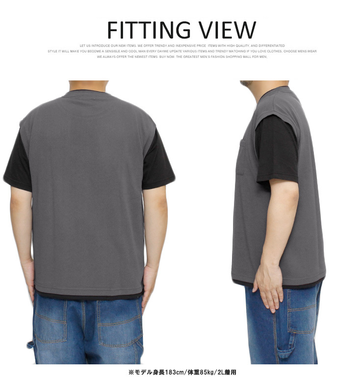 商品名 | 【新品】 3L チャコール ベスト 半袖 Tシャツ メンズ 大きいサイズ フェイクレイヤード ポリエステル ジャガード クルーネック カットソー |