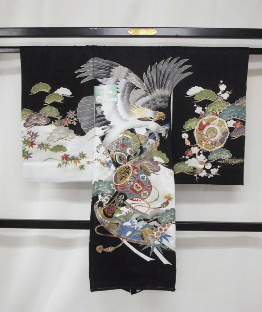 お宮参り用祝い着物熨斗目強くたくましく育ちますようにと願いを込めて勇壮で威厳のある鷹と吉祥柄を配しました*紋入れご希望の方はこのコーナーにあります熨斗目紋入れ¥9800を一緒にご注文してください。 紋名と丸枠有り無しを要望欄に記載してください。 確認メールを送らせていただきますので確認が取れ次第、紋入れ加工に出させていただきます。<素材>表地:絹100%・裏地:ポリエステル100%接写の加減で多少色が実物と異なる場合がございますのでご了承のうえ落札してください *実際にご覧になりたい方は御連絡の上御来店ください。03-3663-7071(きもの遊着苑・杉山(株))*土曜・日曜・祝日はお休みの為、ご連絡、発送はできませんのでご了承ください*実店舗がございますので先に売り切れてしまうことがございますのでその時はご連絡させていただきます