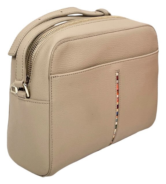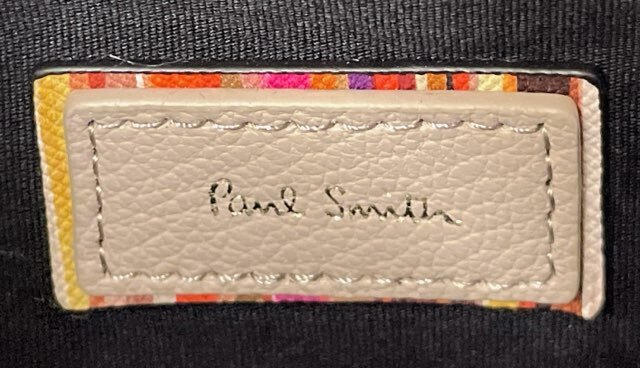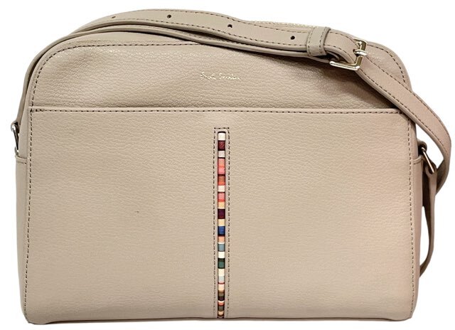 コメント・・・ポールスミスの斜め掛けショルダーバッグです。ベージュ×マルチストライプのポールスミスらしいデザインです。