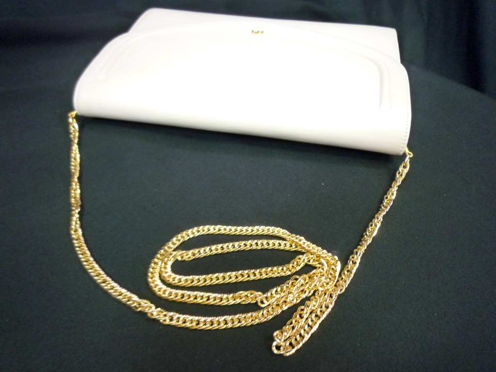 金のチェーンを中に入れたらクラッチバックにもなります。