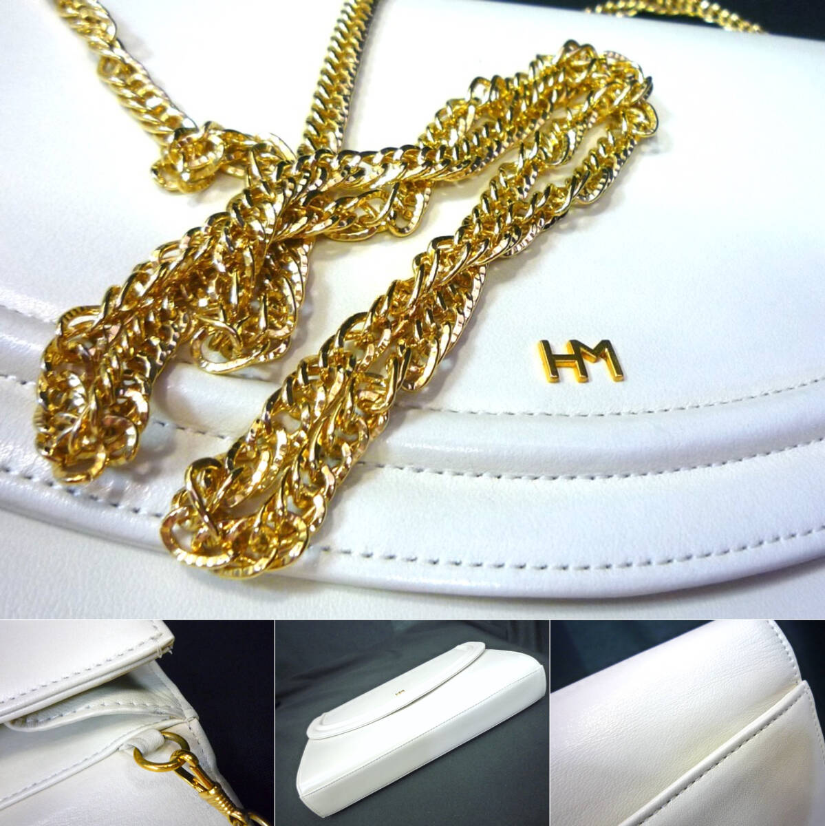 HANAE MORI 森英恵 ハナエモリ チェーン ショルダーバッグ レザー 白 レディース お買得 美品 箱入 高級 エレガント パーティー 結婚式 フォーマル 必見 になります。 画像のものが全てです。