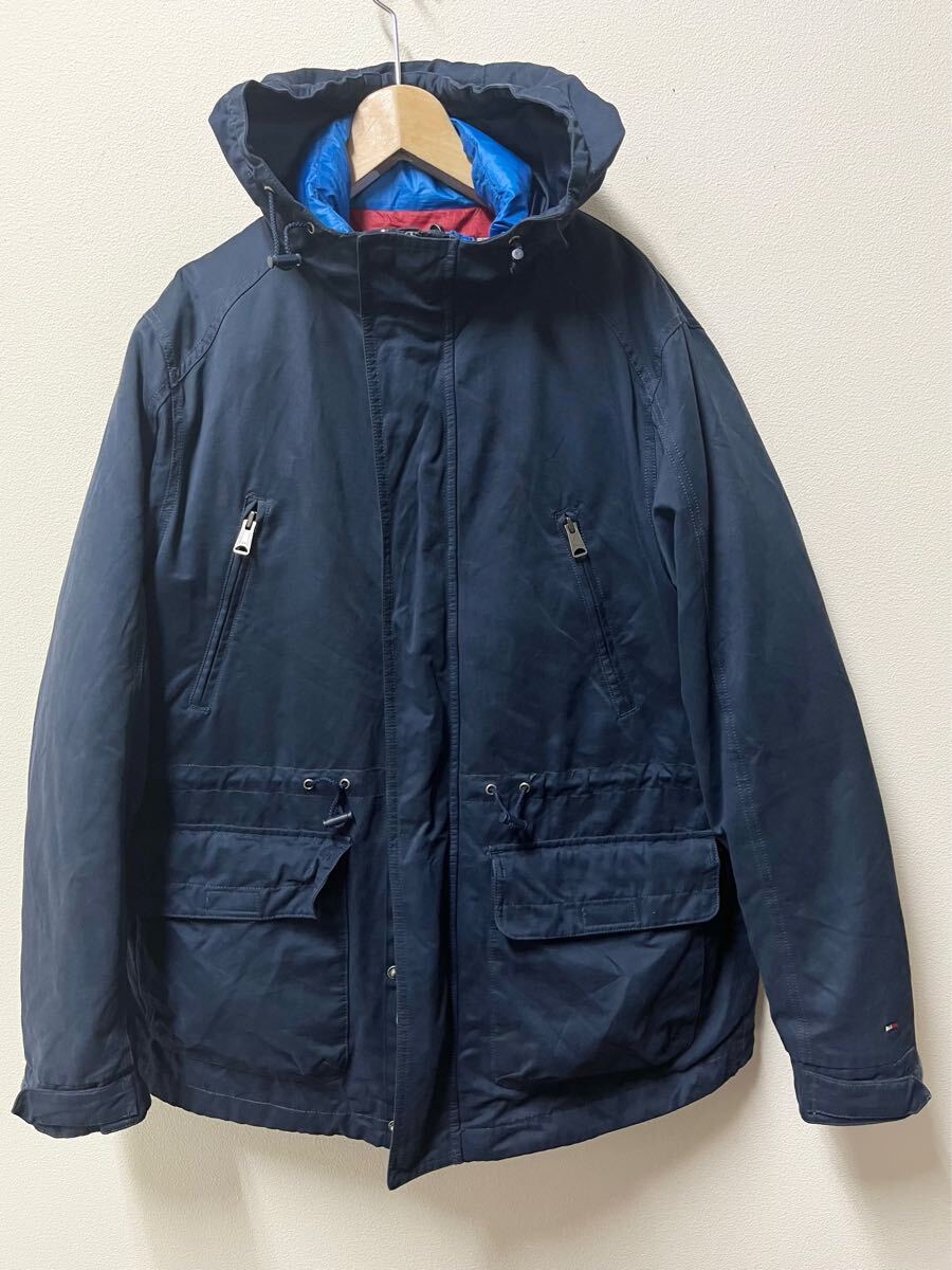 トミーヒルフィガーライナーダウンジャケット付きネイビーパーカーL