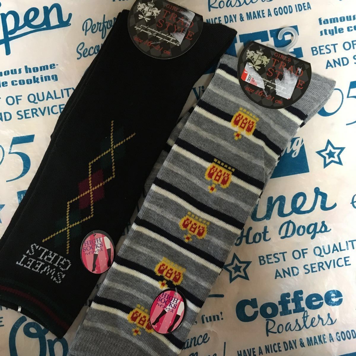 画像二は、未使用タグ無いです。20㎝の娘が履いたら小さいため19㎝ぐらいまでかと思います。画像5の、白リンゴ柄二足は、未使用ですが長期保管のためうっすら黄ばんでます。洗えば落ちると思います。 ソックタッチ靴下とめ2つ 日本製 石鹸の香り ニーハイや、ハイソックスのずれ落ち防止に