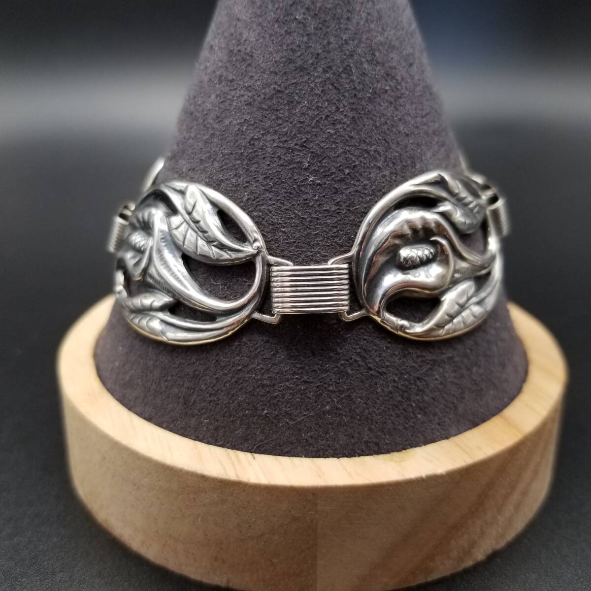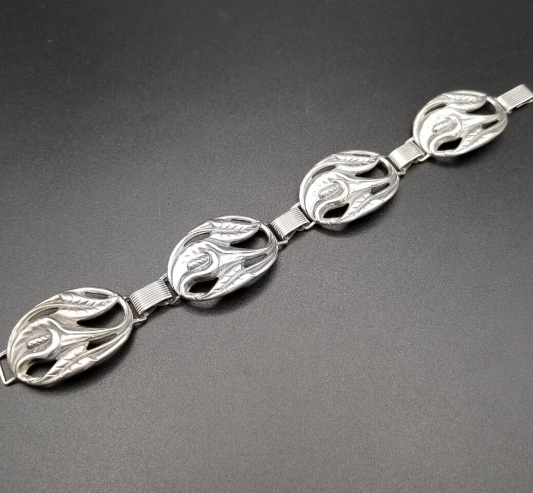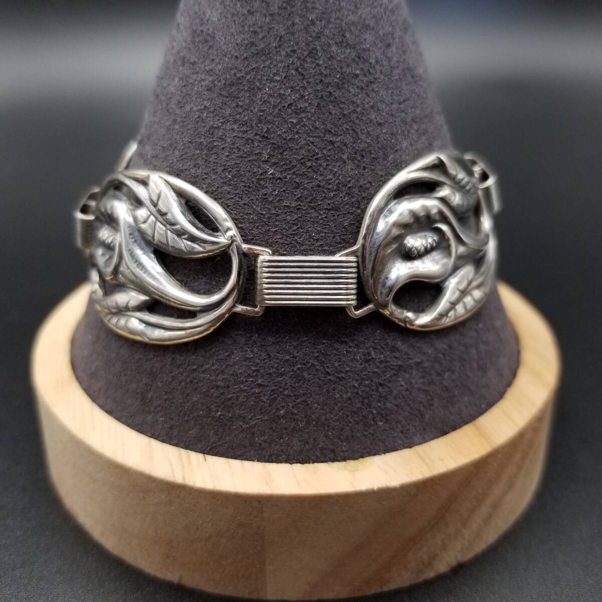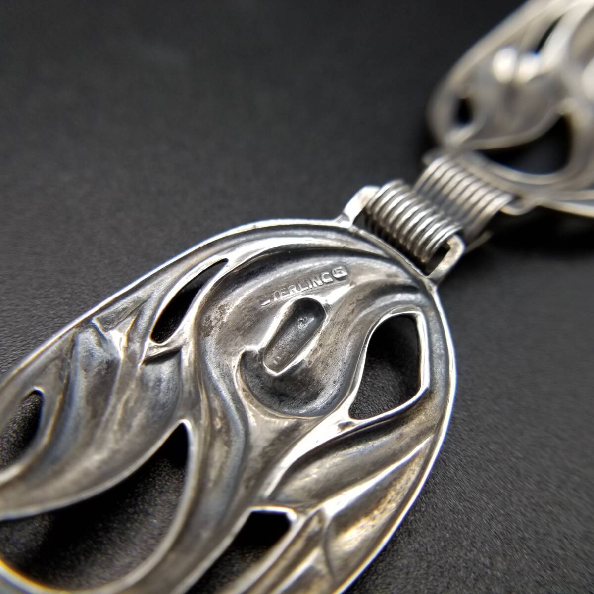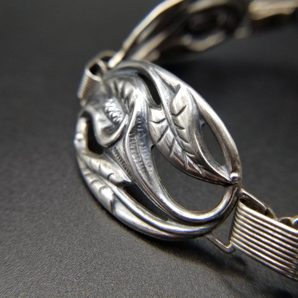 カラー ユリ 楕円パネルチェーン リンク 925 シルバー ヴィンテージ フラワー ブレスレット 銀細工 フローラル 自然派 Y19-P