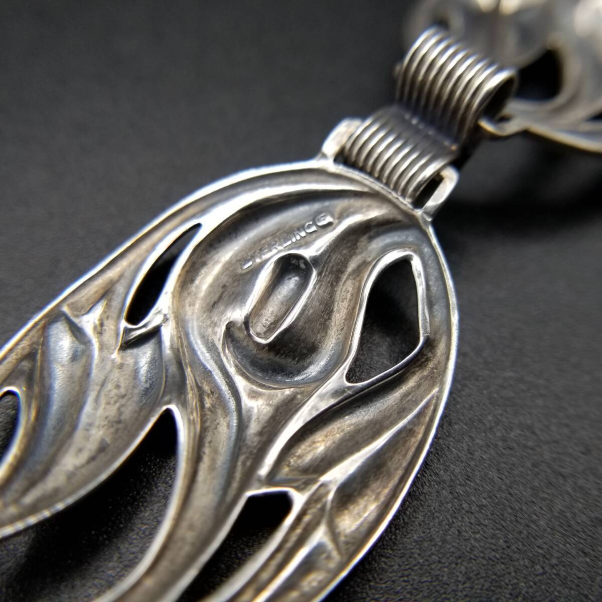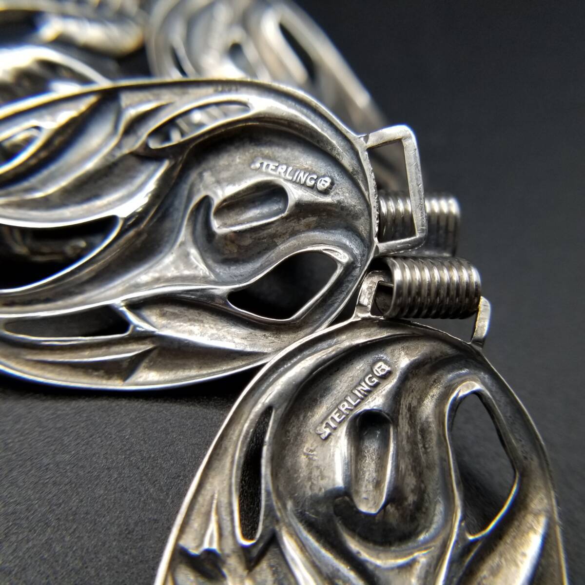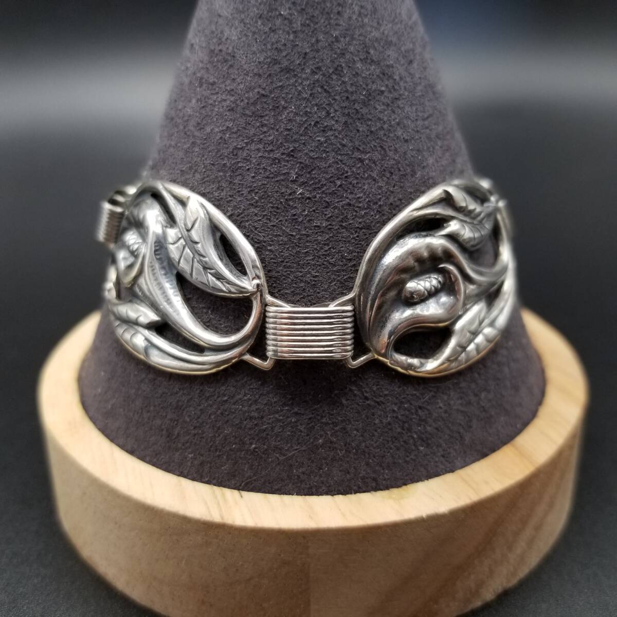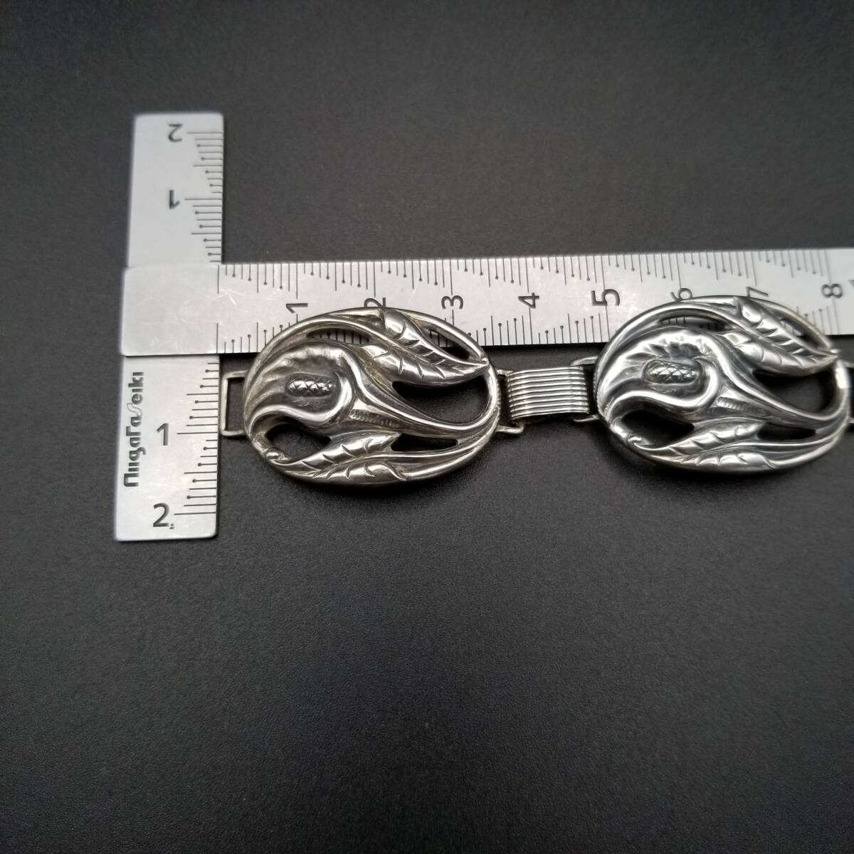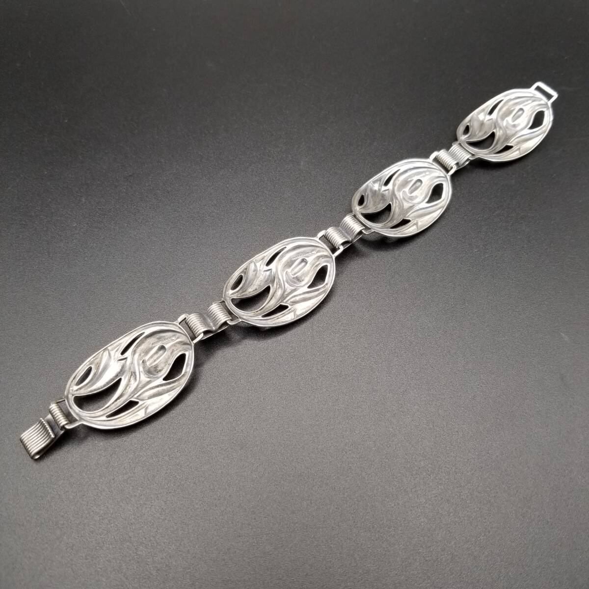 カラー ユリ 楕円パネルチェーン リンク 925 シルバー ヴィンテージ フラワー ブレスレット 銀細工 フローラル 自然派 Y19-P