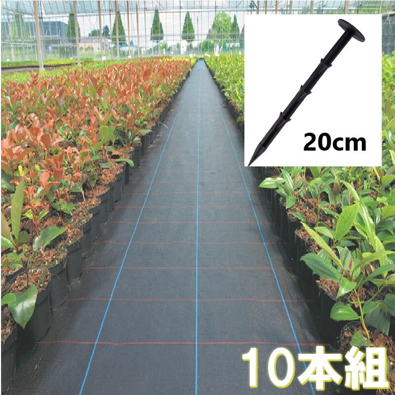 10個入り 防草シート 固定ピン ブラック 20cm シート固定 PP杭 防風ネット 雑草 防虫 防雨 マット固定 安全 園芸 畑
