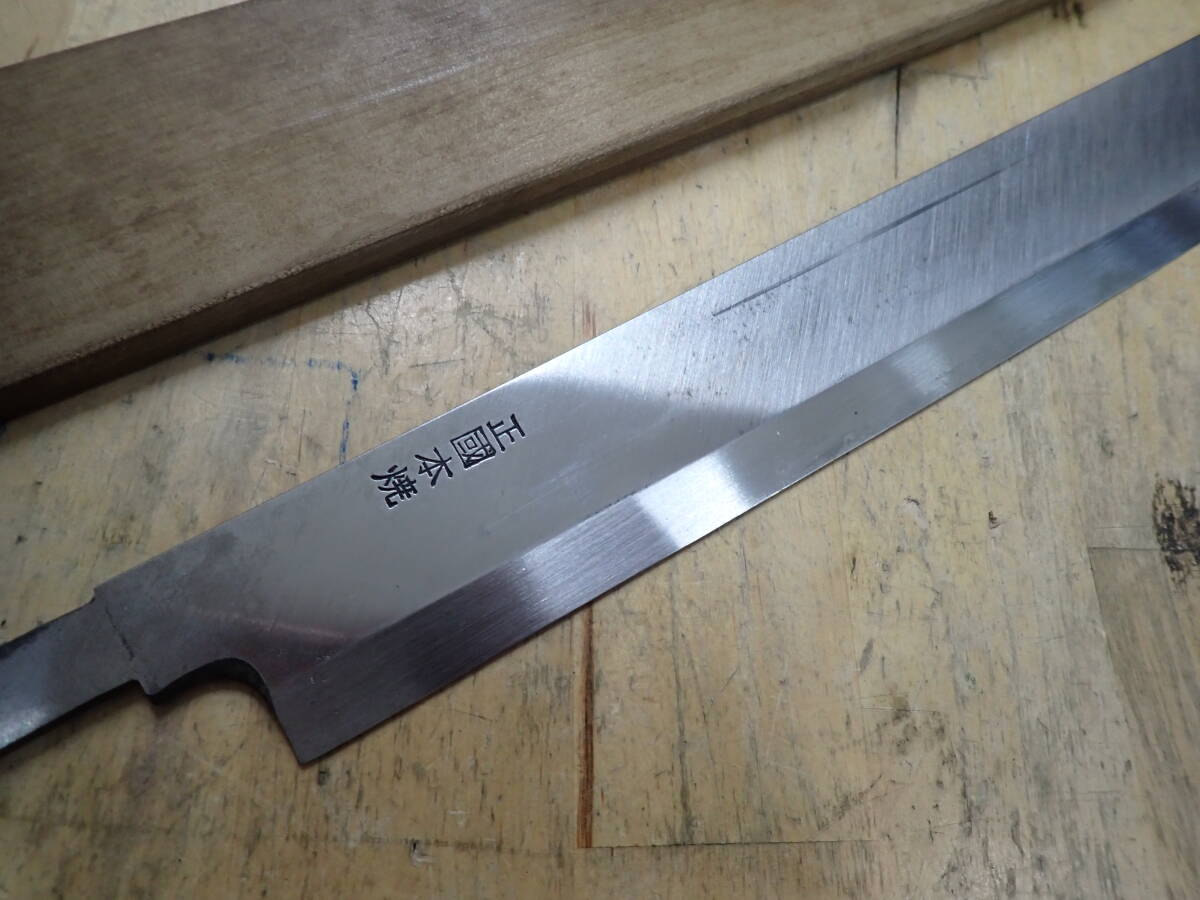 『M27E』沖芝正國 刻印有 本焼 包丁 刺身包丁 式包丁?  長期個人宅保管品