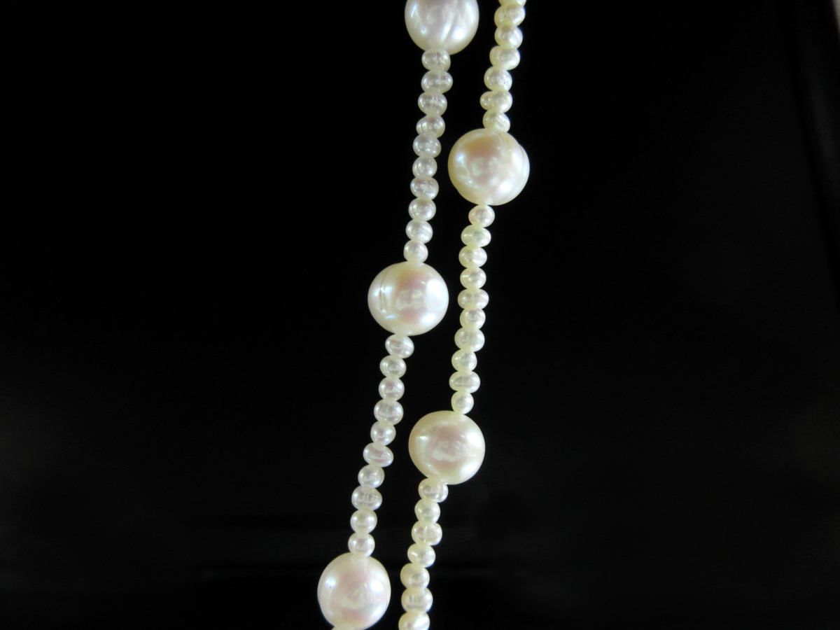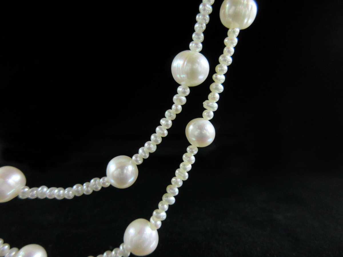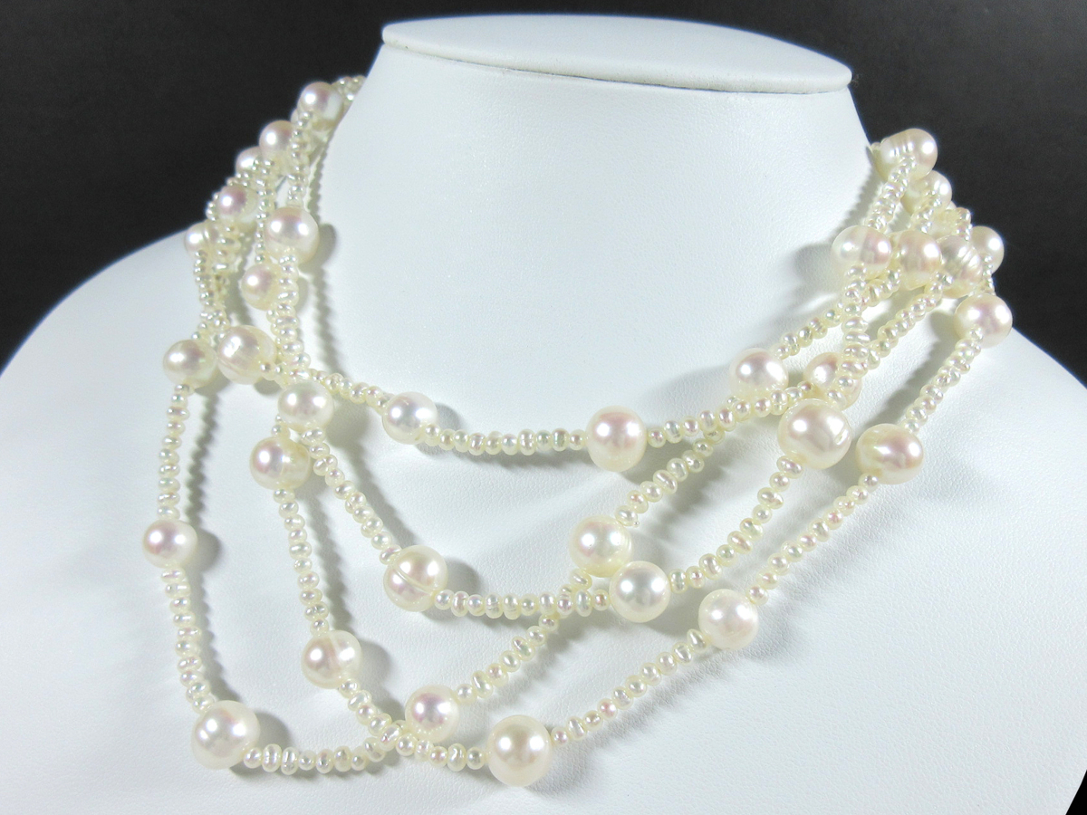 3mm~9mm 淡水真珠 ステーション ロング ネックレス 182.5cm J06