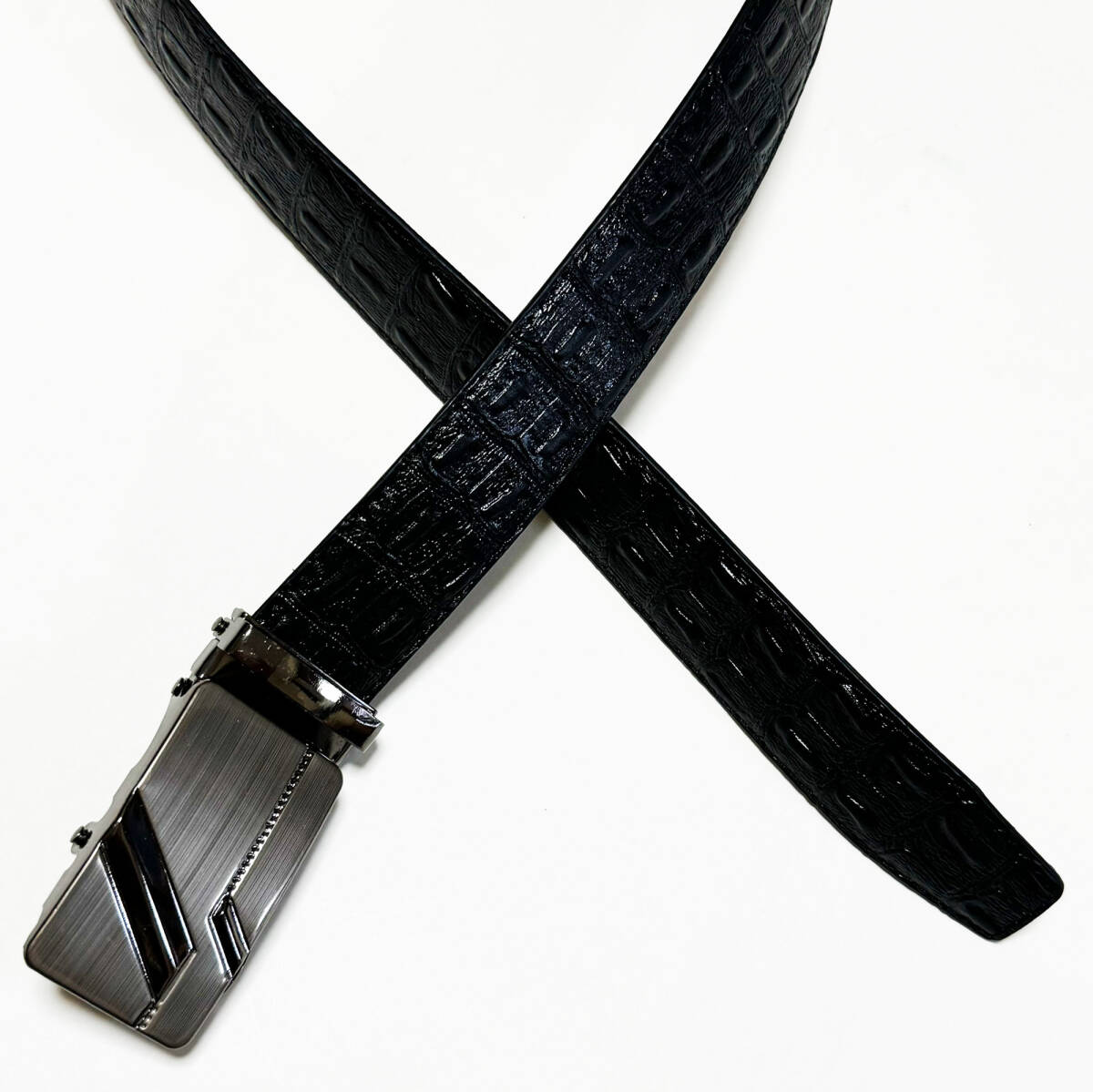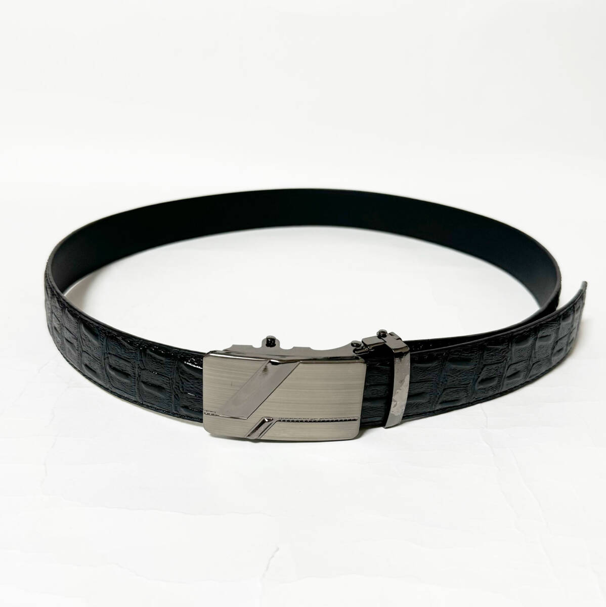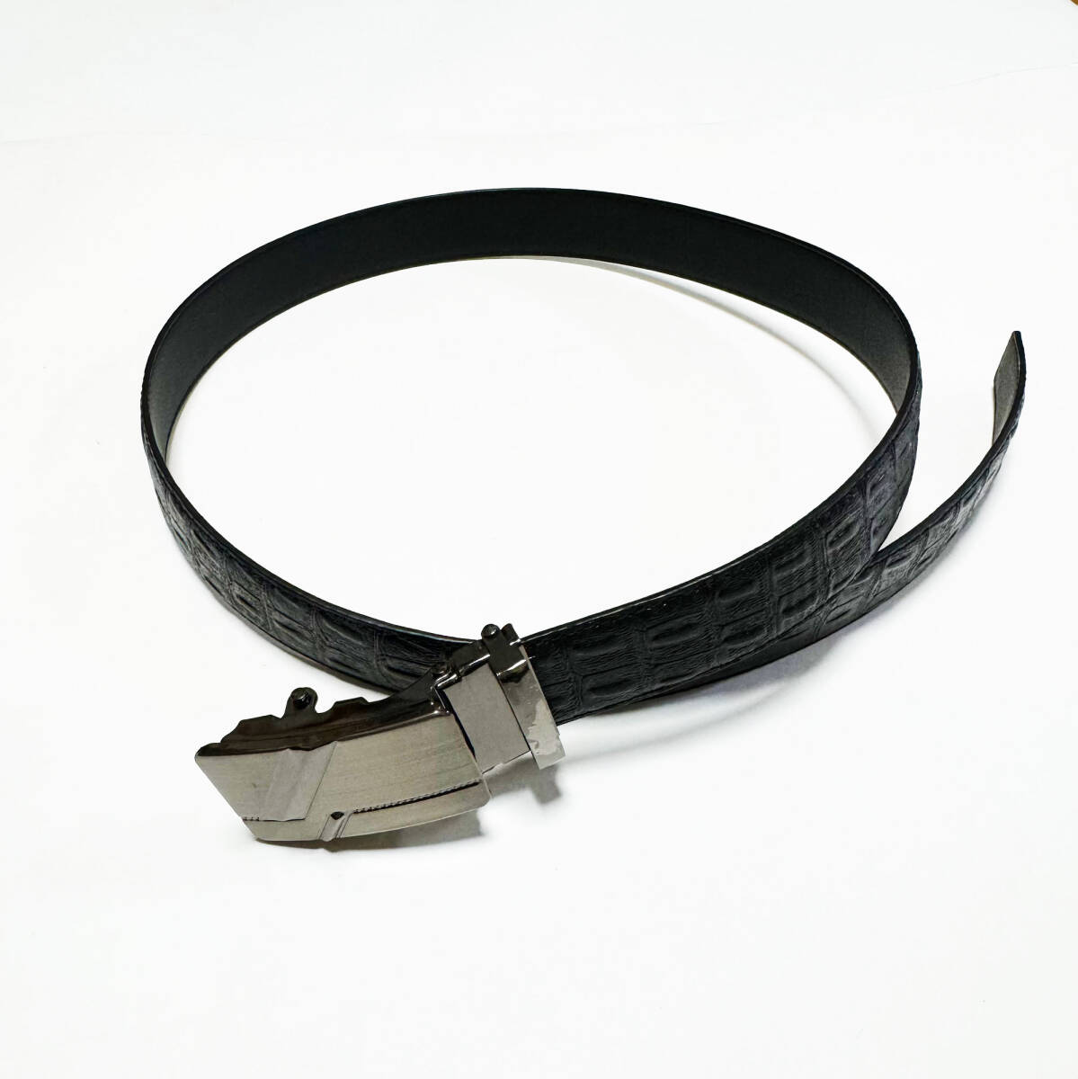 ■押し型クロコダイル合成皮革/レザーベルト・ブラック FREE/ウエスト80~85㎝位新品B■ | |