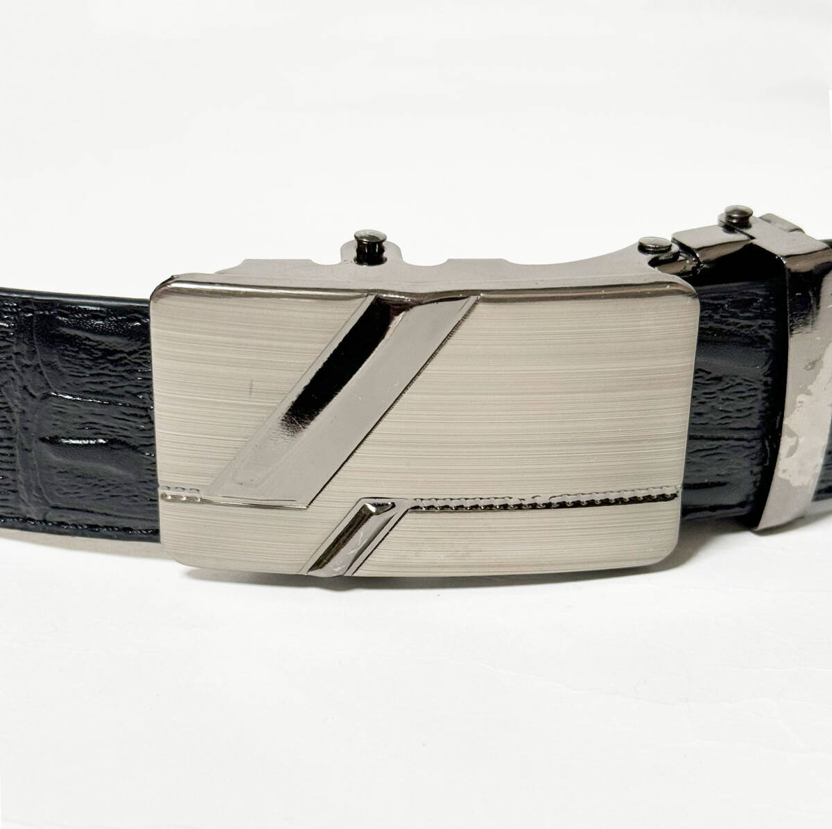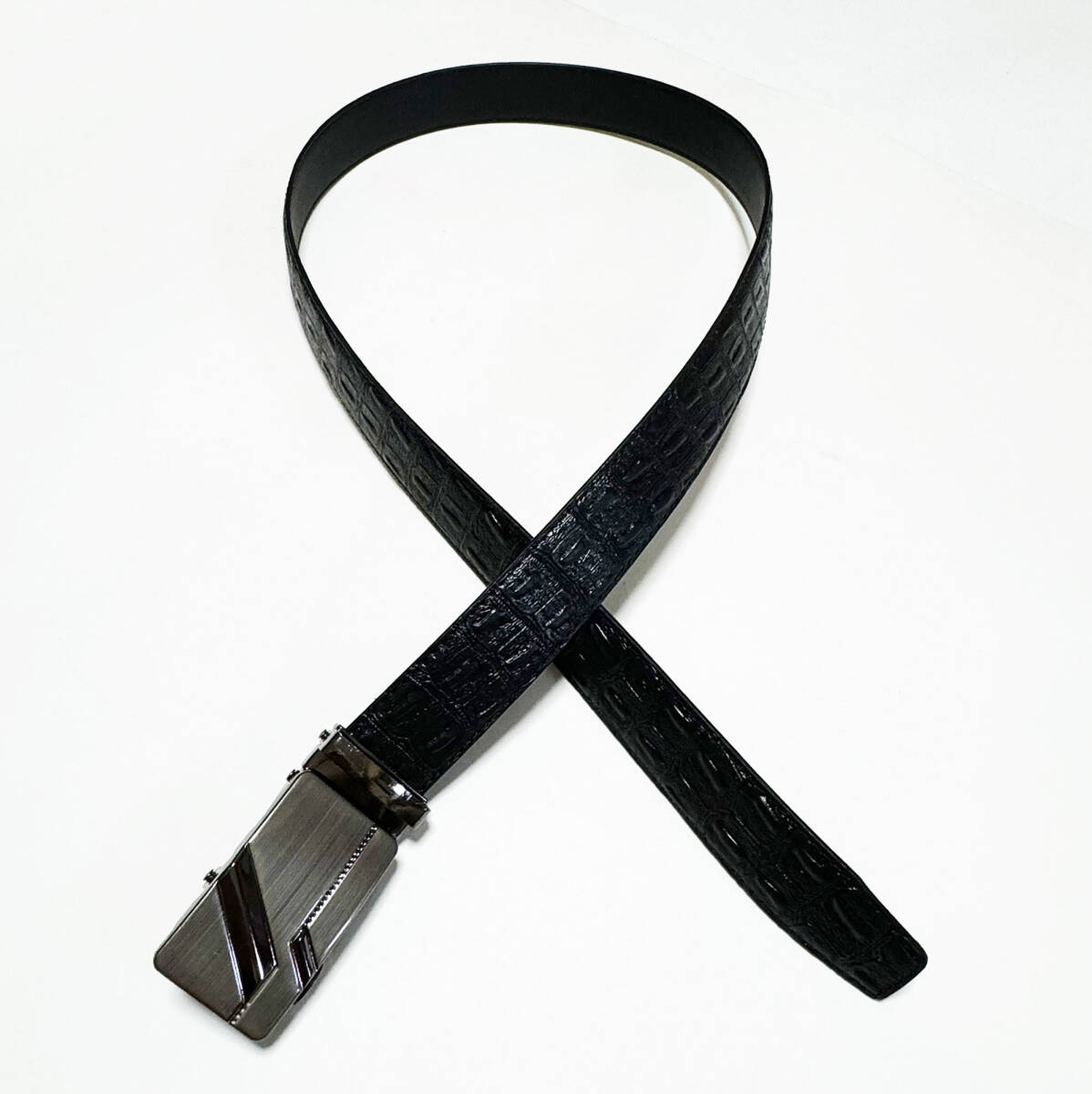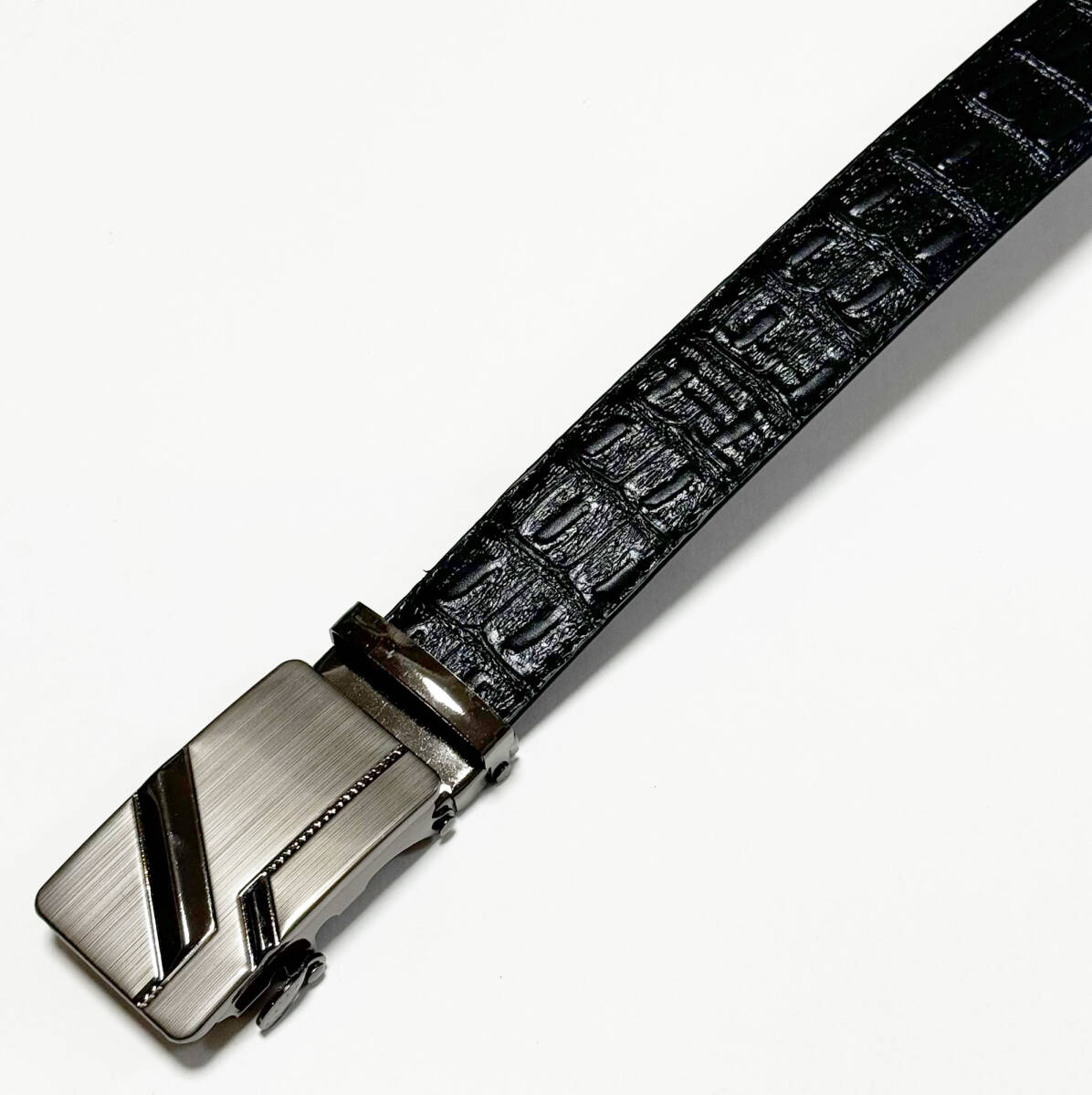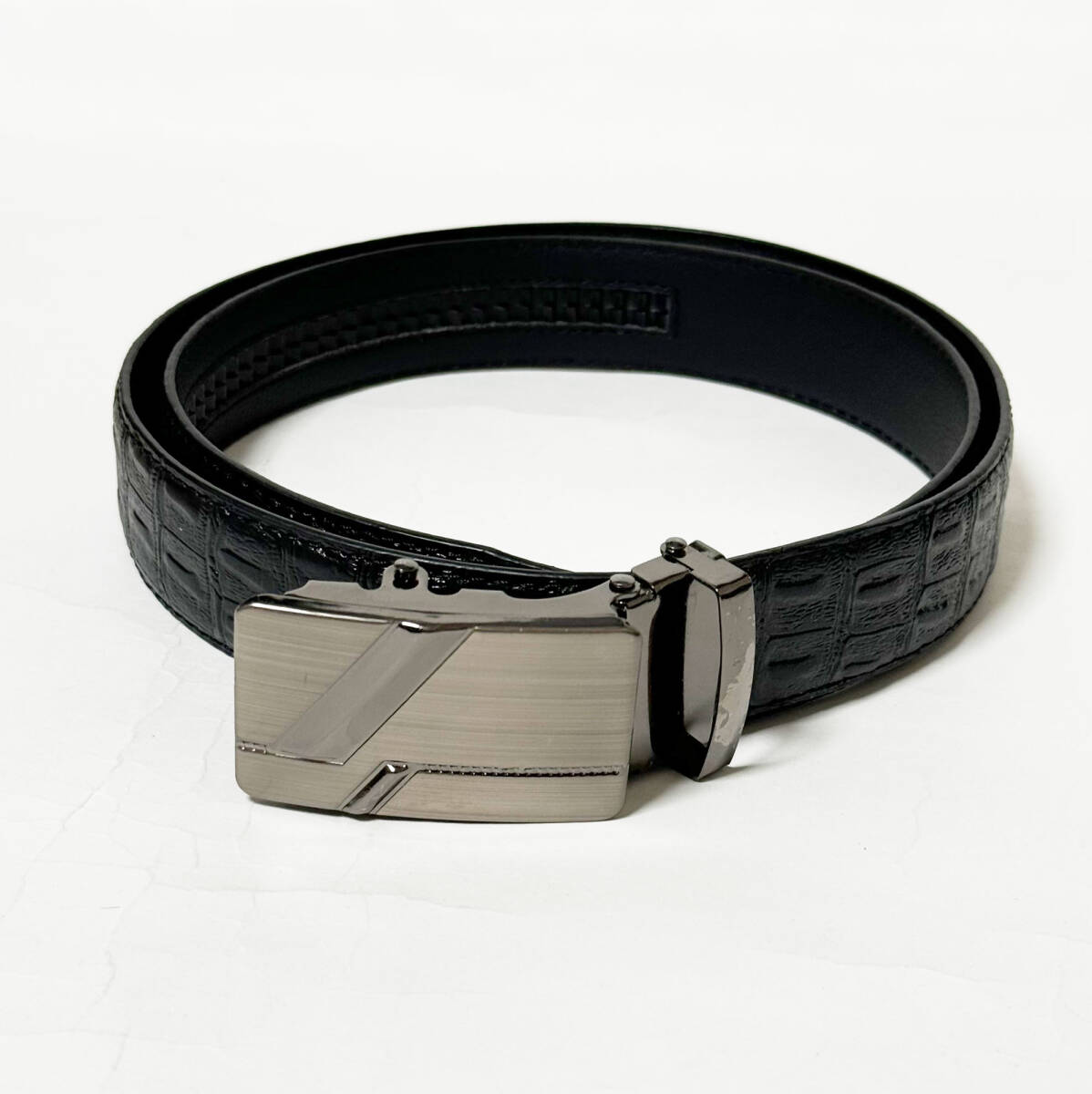 ■押し型クロコダイル合成皮革/レザーベルト・ブラック FREE/ウエスト80~85㎝位新品B■ | |