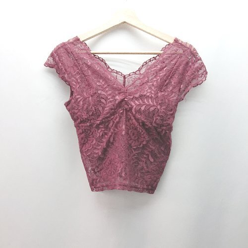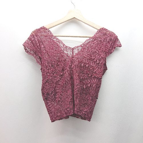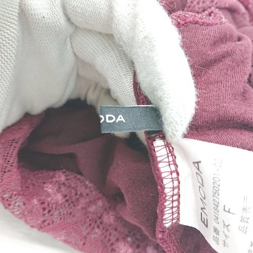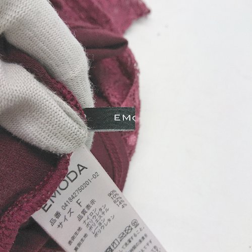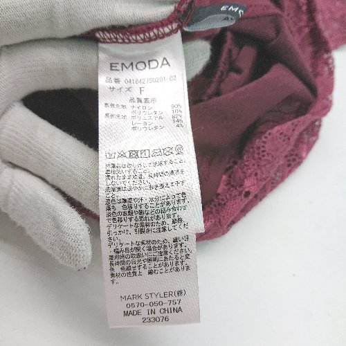 ◇ EMODA Vネック ブラパット入り 総レース 花柄 裏地あり カットソー サイズFREE ワインレッド レディース E