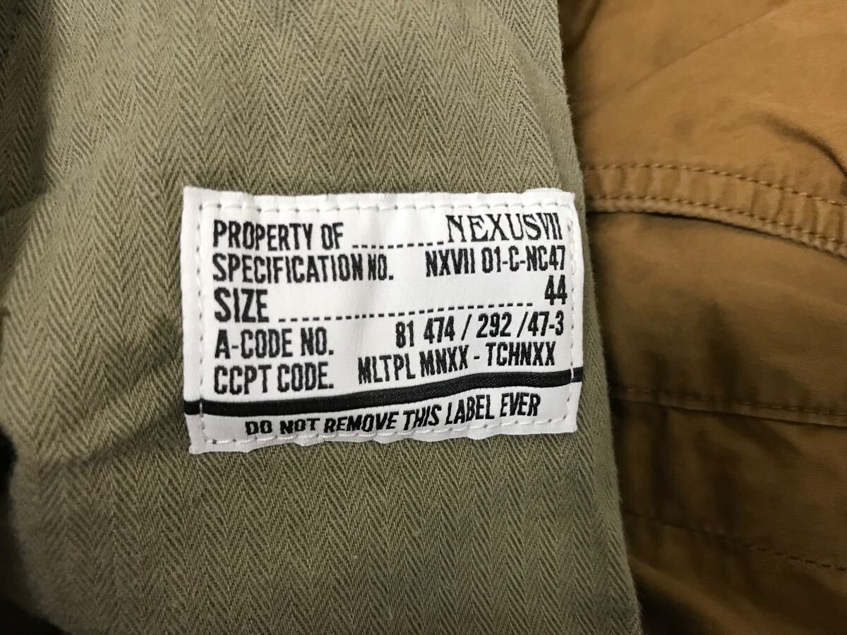 【商品名】本物ネクサスセブンNEXUSⅦコットンチノパンツメンズサーフアメカジミリタリーストリートスケーターワークビジネススーツモードゴルフドレス茶ブラウンS44日本製