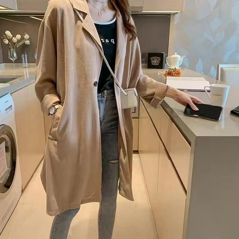 LRM3986★トレンチコート レディース カーディガン 春 スプリングコート コットンリネン ロングコート 綿麻混