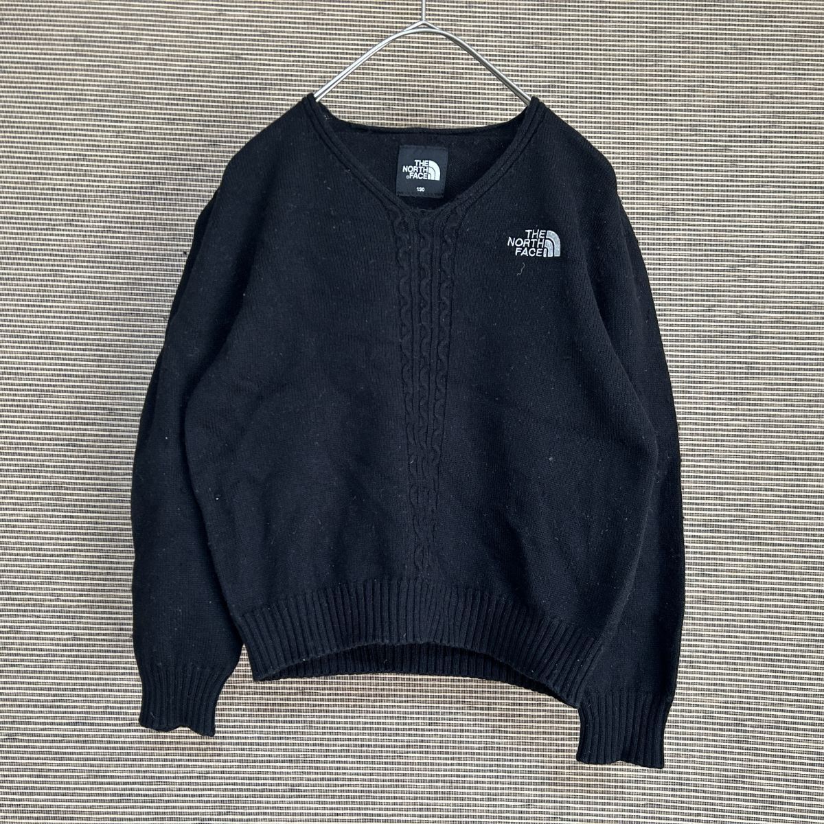 【ノースフェイス】ニットトレーナー セーター 黒ブラック刺繍 子供130綿 A3 | |