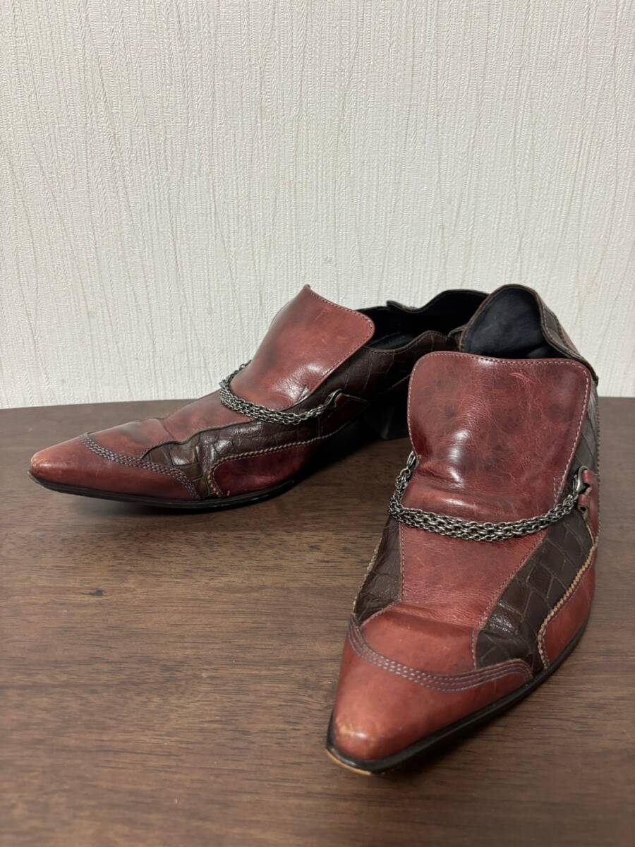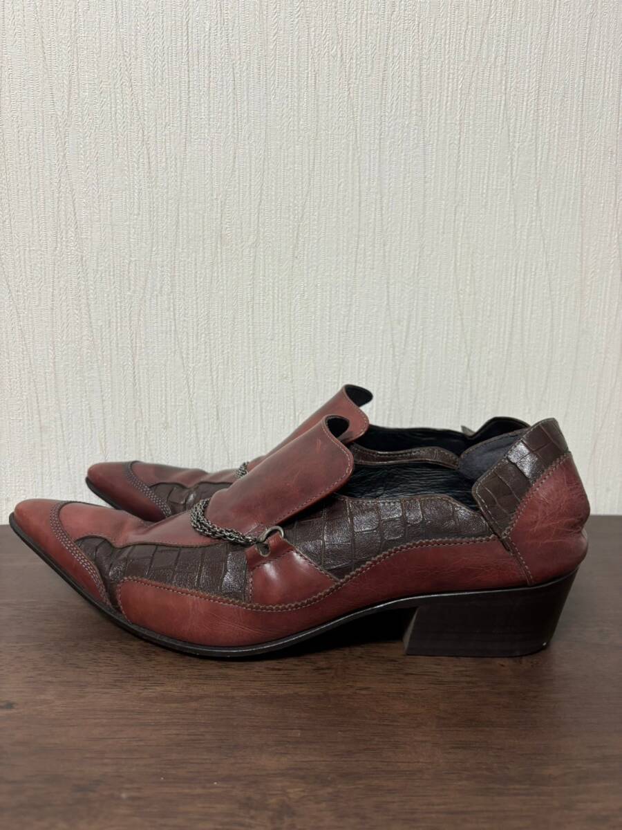 [TORNADO MART] クロコ型押し切替 チェーン装飾 レザーミュール シューズ L 本革 トルネードマート