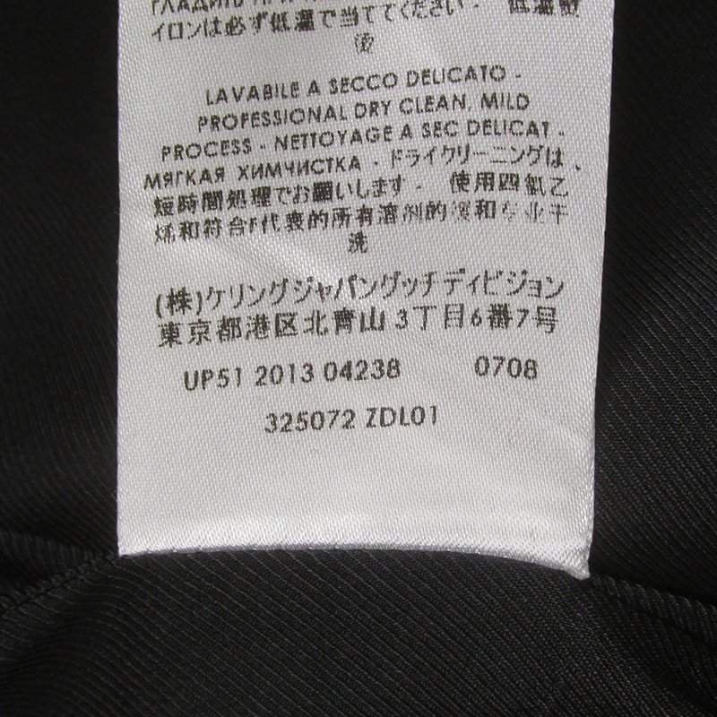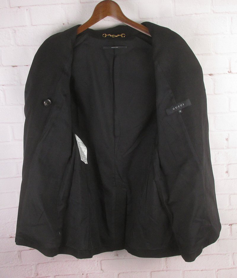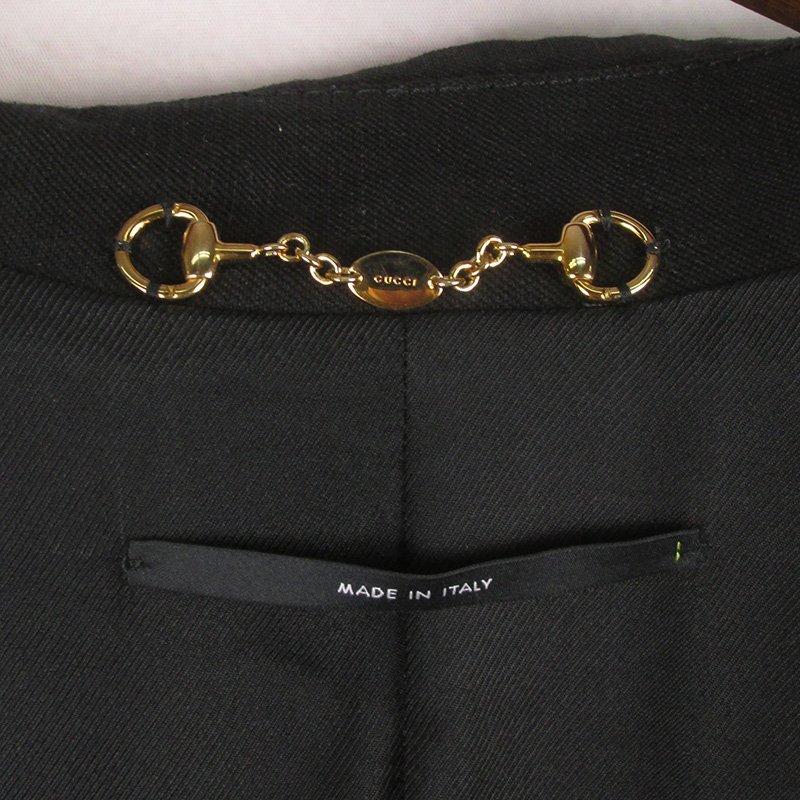 商品詳細 | ■ブランド :GUCCI ■素材:リネン98%×シルク2% ■カラー : ブラック ※色に関してはこの商品の出品者の主観で判断しております。カタログや正規のカラーとは言い回しが異なる場合があります。 ■下げ札が付属します。 ■商品の詳細 ・数回使用程度のとてもきれいな美品です。 ・襟首にわずかな色あせが見られます。 ・腰ポケットが仕付け糸で留められています。 273161S |