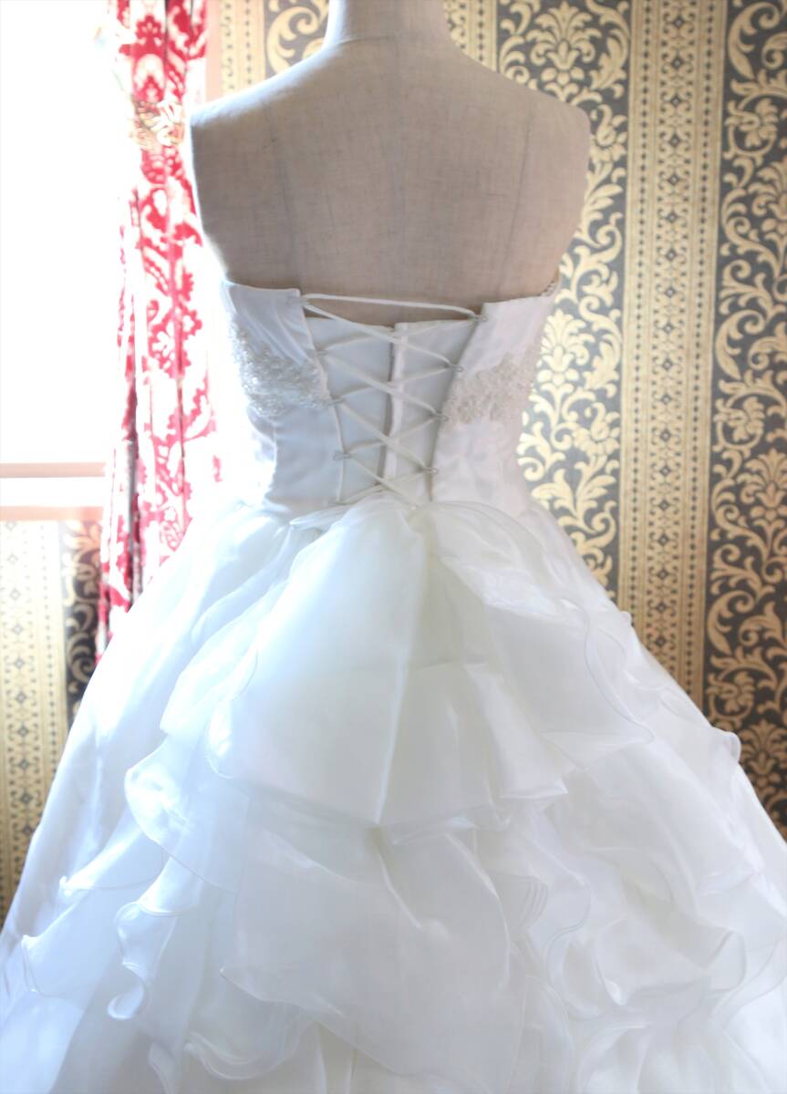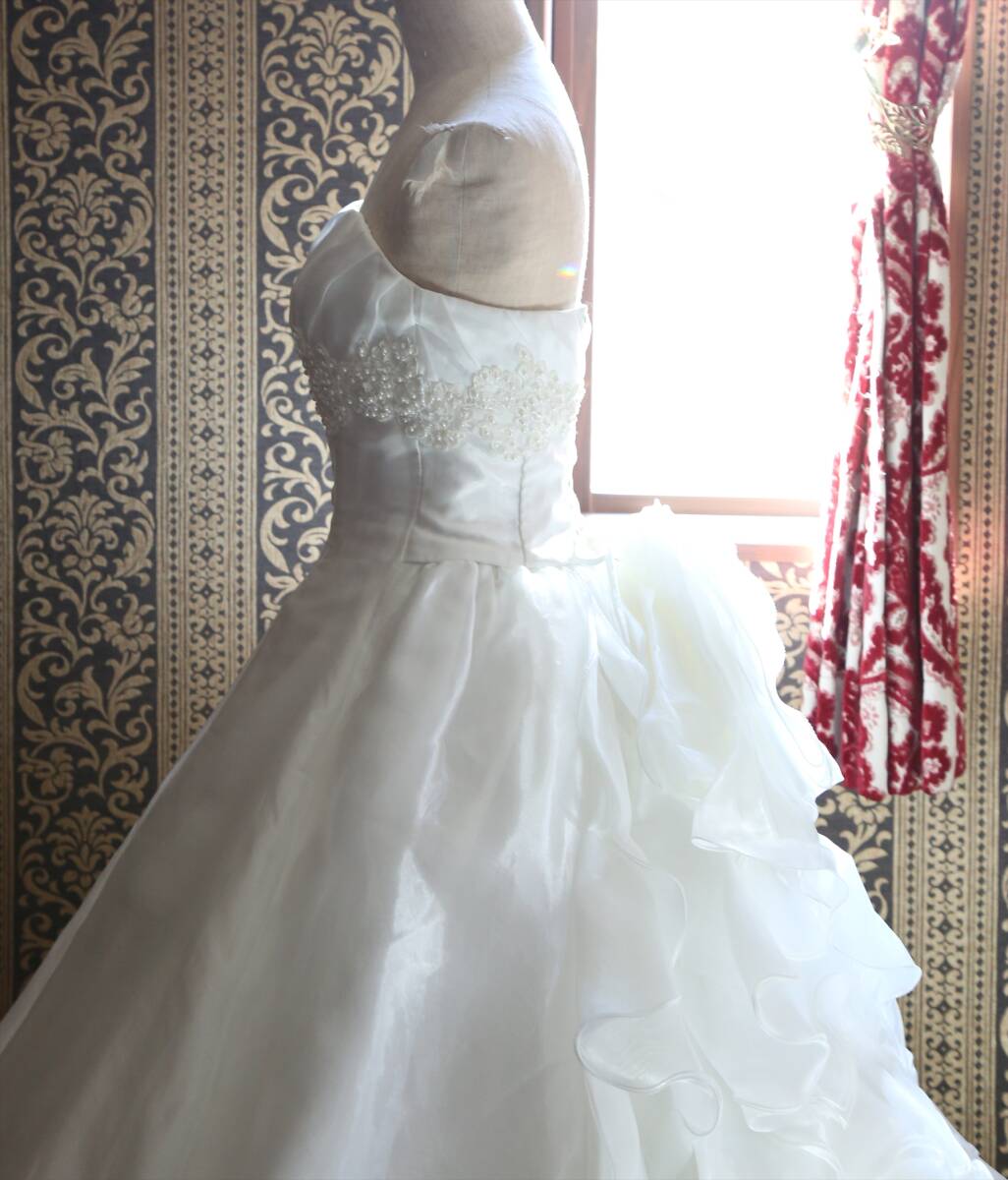 ドレスはバストとウエストサイズで着るようになるので、『○サイズの服が着れるから』『身長が低いから』等で判断せず、必ずご自身のサイズを計って入札をお願いいたします。