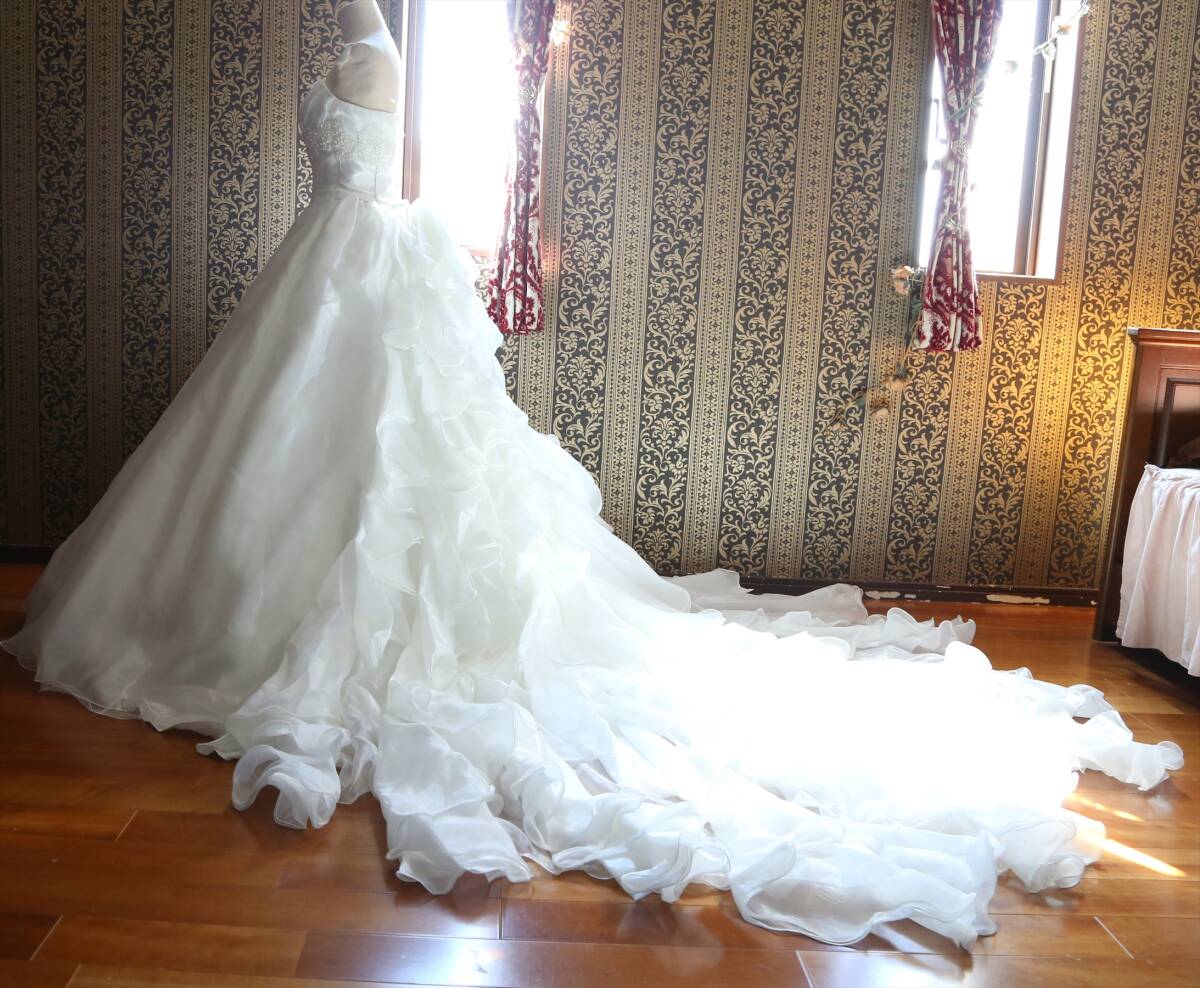 前中心から裾までの丈約139cm、脇下から裾までの丈144cm、後ろ丈約237cm、