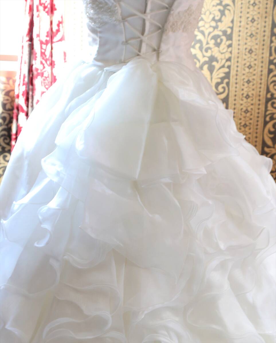 多数のブランドドレスを手掛けるアルファブランカ製で、粗悪品ではなく結婚式等で使用される高品質なウエディングドレスです。