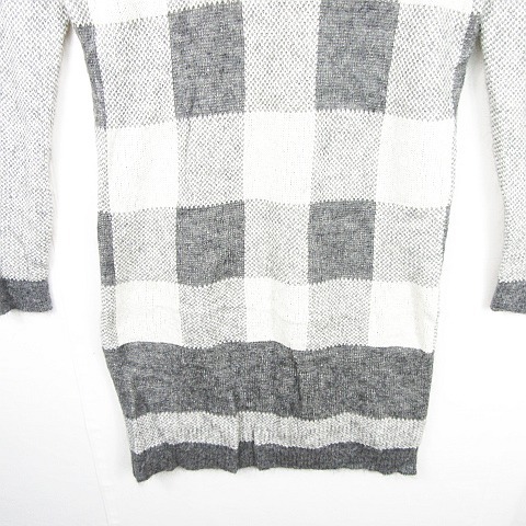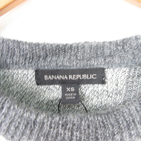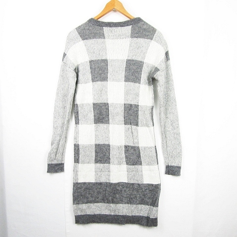 バナナリパブリック BANANA REPUBLIC ニット ワンピース 膝下丈 長袖 綿 モヘヤ 毛 XS グレー ギンガムチェック 小さいサイズ kz9472 レディース