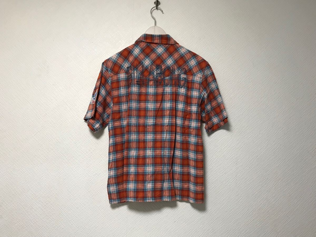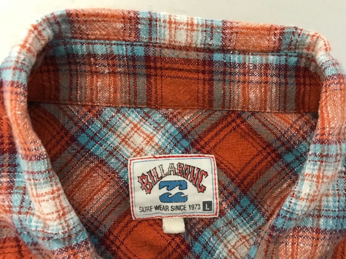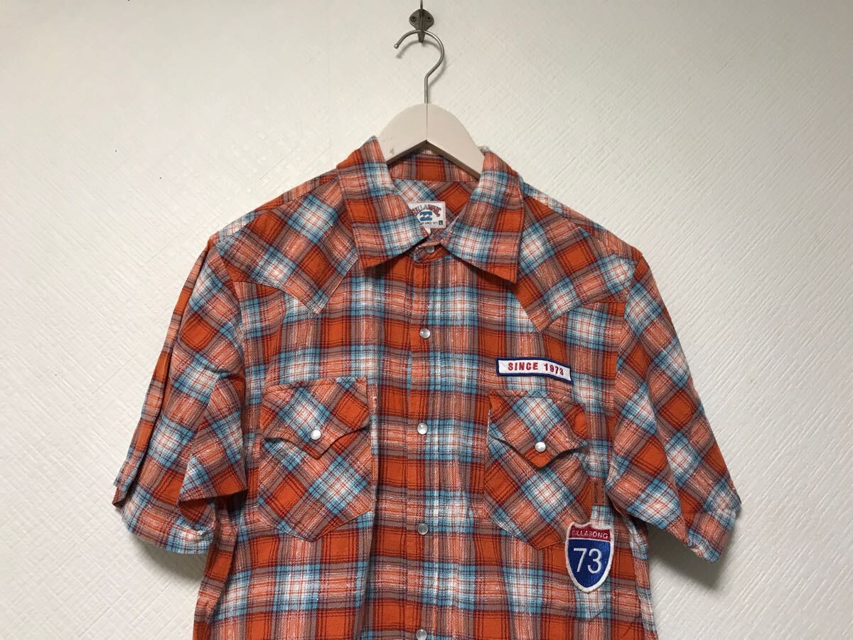 【商品名】本物ビラボンBILLABONGコットンチェック柄ウエスタンワッペン半袖シャツメンズサーフアメカジミリタリーストリートスケーターワークビジネススーツモードゴルフドレスオレンジL
