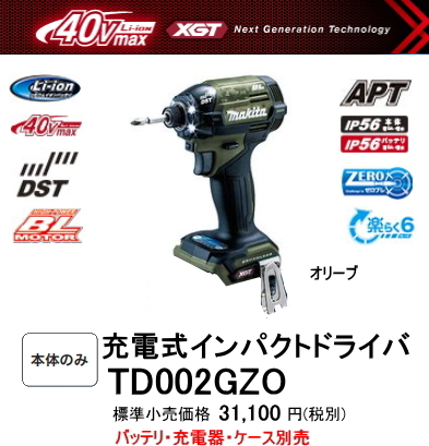マキタ 充電式インパクトドライバ TD002GZO オリーブ 【40V】