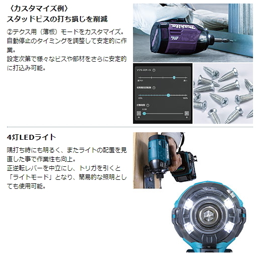 テクス用「薄板」モード: ビス貫入後、打撃を検知し自動停止