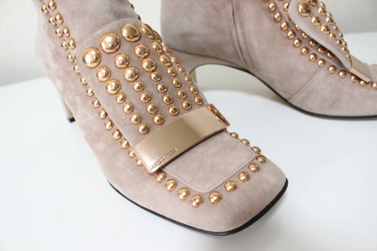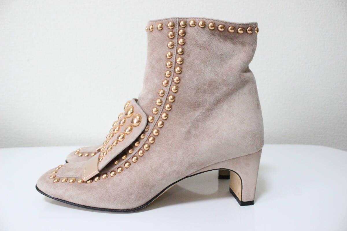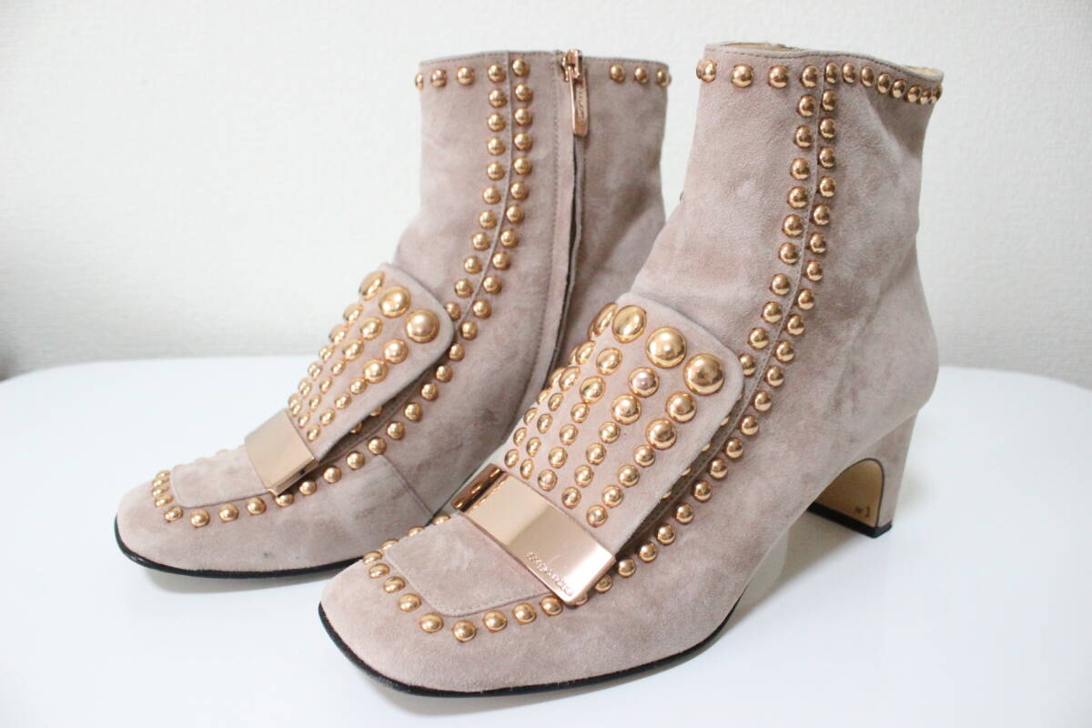 ・ブランド SERGIOR ROSSI セルジオロッシ ・アイテム ショートブーツ ・サイズ 351/2(約22、5cm~約23cm)ヒール約5、5cmファスナー約14cm ・素材 スエード ・付属品 保存袋 ・色 ピンクベージュ×ピンクゴールド ・管理番号 6YZ109500 ・状態 10段階中7程度。アウトソールに少しのすり減り、スエード特有のスレが少しあり、少し着用感は感じられますが目立つほどのダメージはございません。自宅保管ですので神経質な方はお控え下さい。USEDですので御理解下さい。 ・本物ですのでご安心ください。ロゴプレートとスタッズが映えるデザインです。カジュアルにもきれいめにもコーディネート可能です。 |