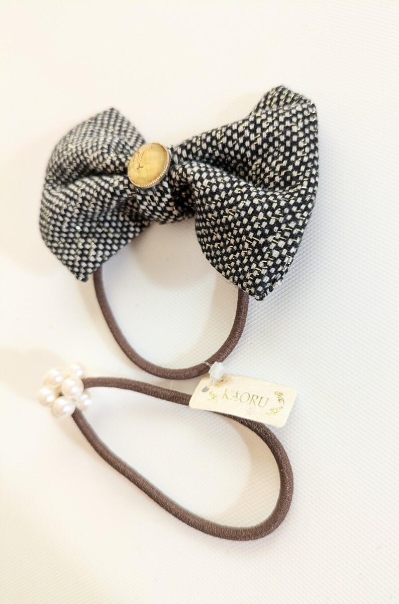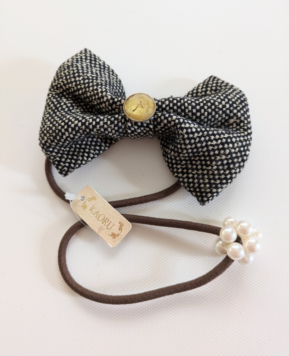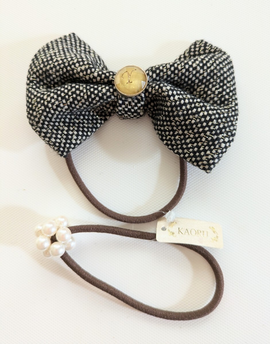 こちらは、リボンのものと、白いビーズがついてるものと2個セットになっているヘアゴムになります♪