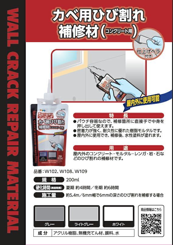 屋内外のコンクリート・モルタル・レンガ・岩・石などのひび割れの補修材です。