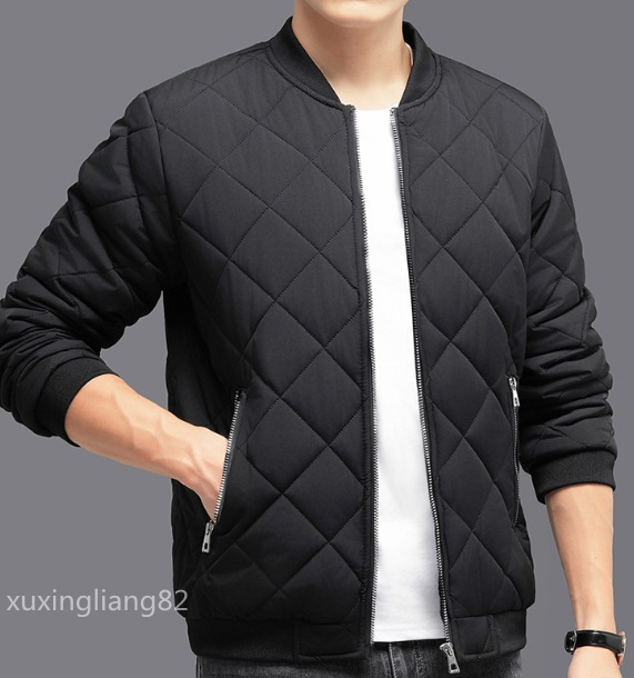 冬新作 メンズ 中綿ジャケット キルティング ブルゾン 裏ボア アウター 防寒 厚手 カジュアル 黒/3XL