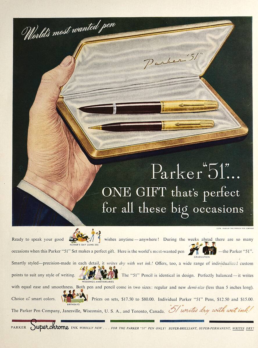 稀少・広告!1948年パーカー万年筆 広告/Parke 51 Pen/文房具/D