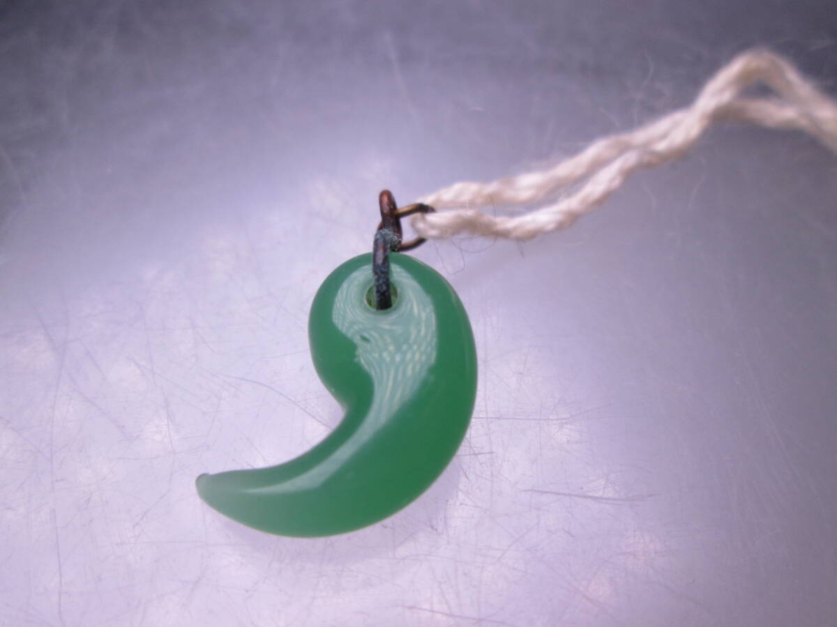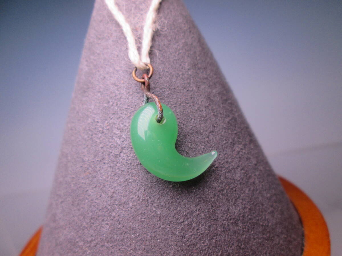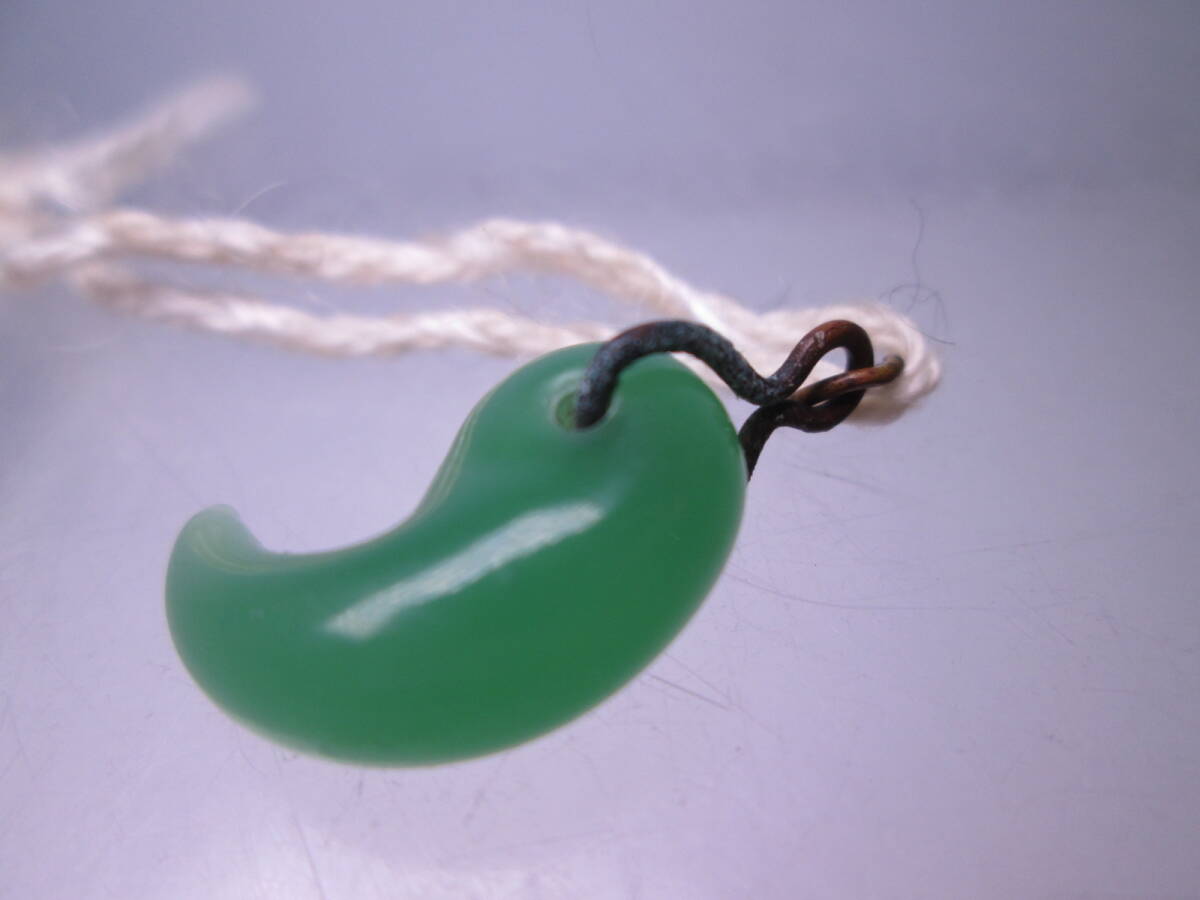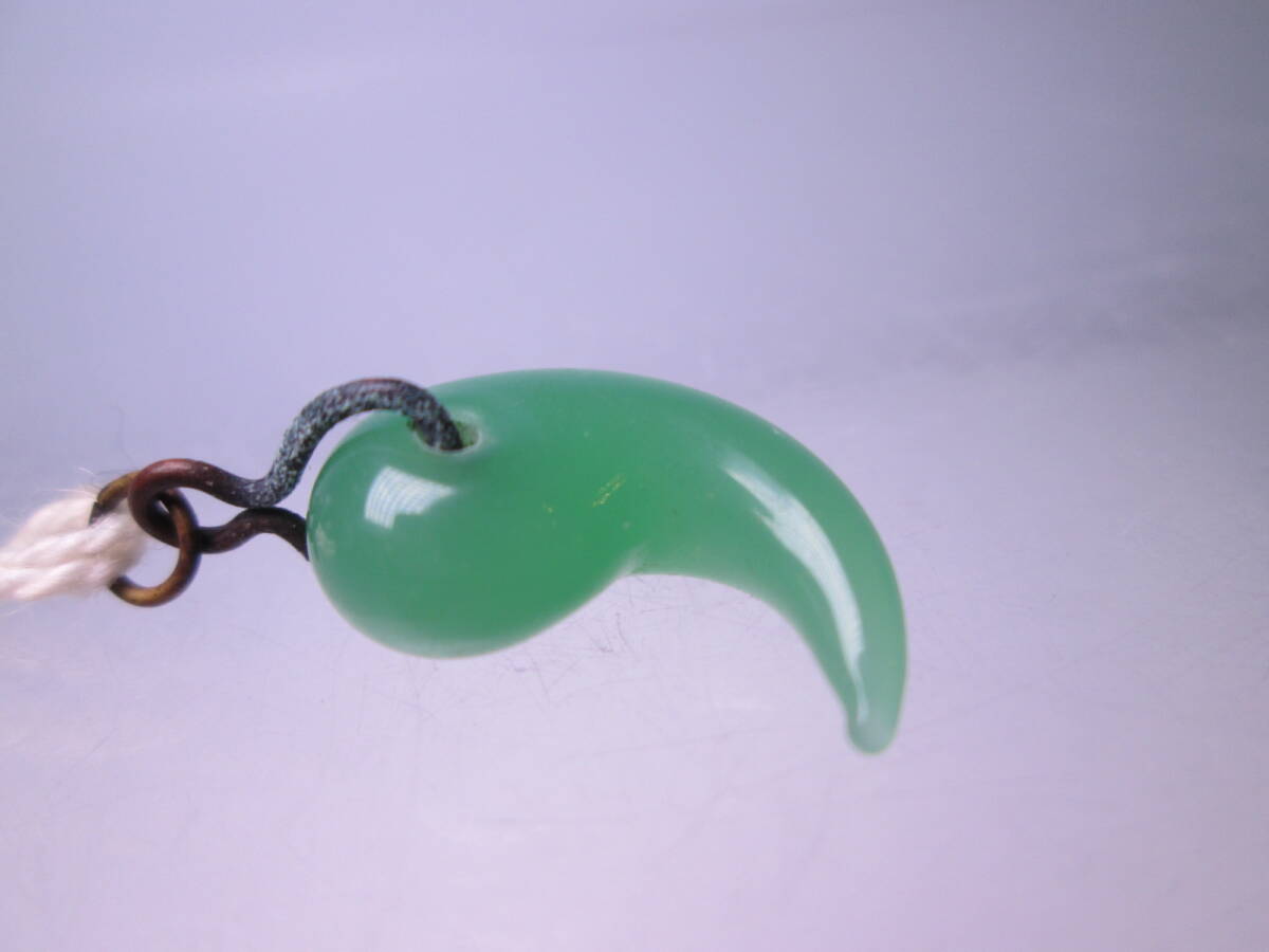 ☆アンティーク・小さな緑石の勾玉形の飾り 提げ物 根付
