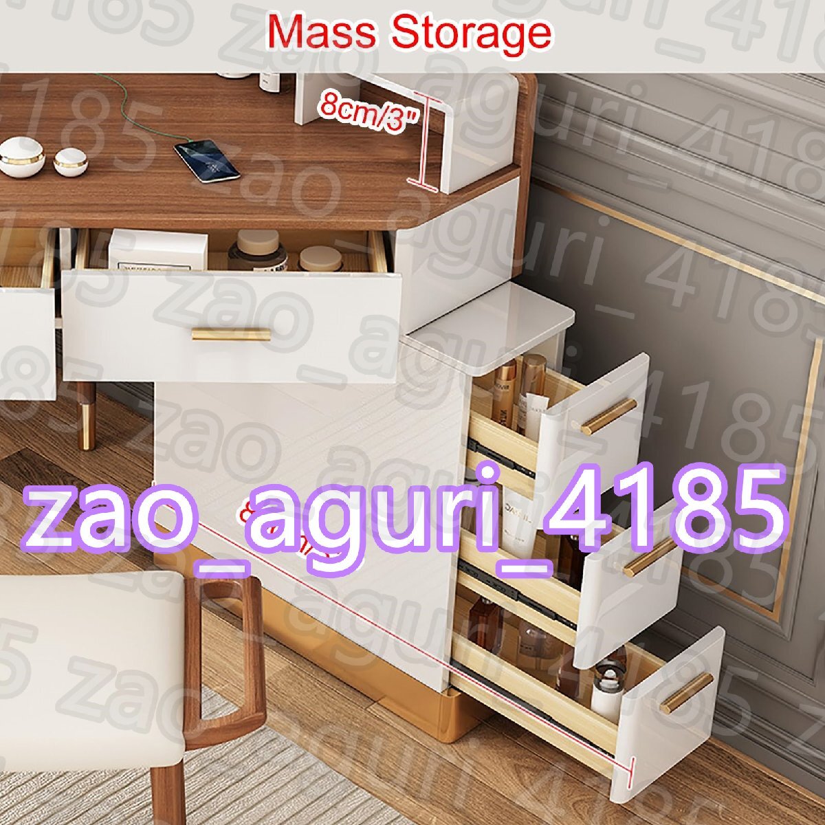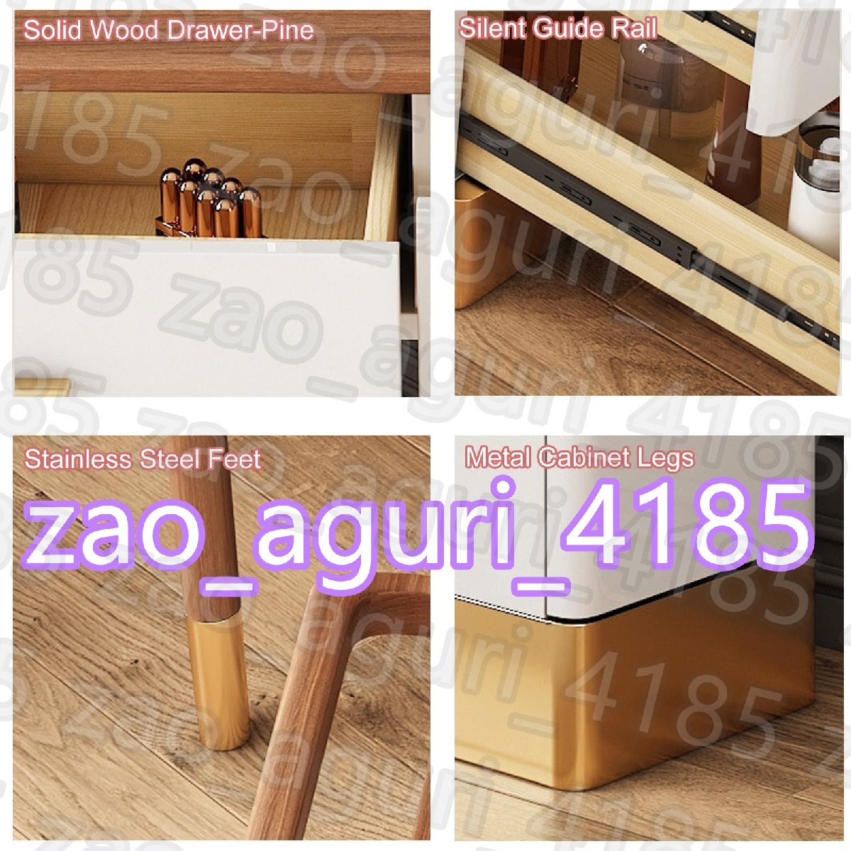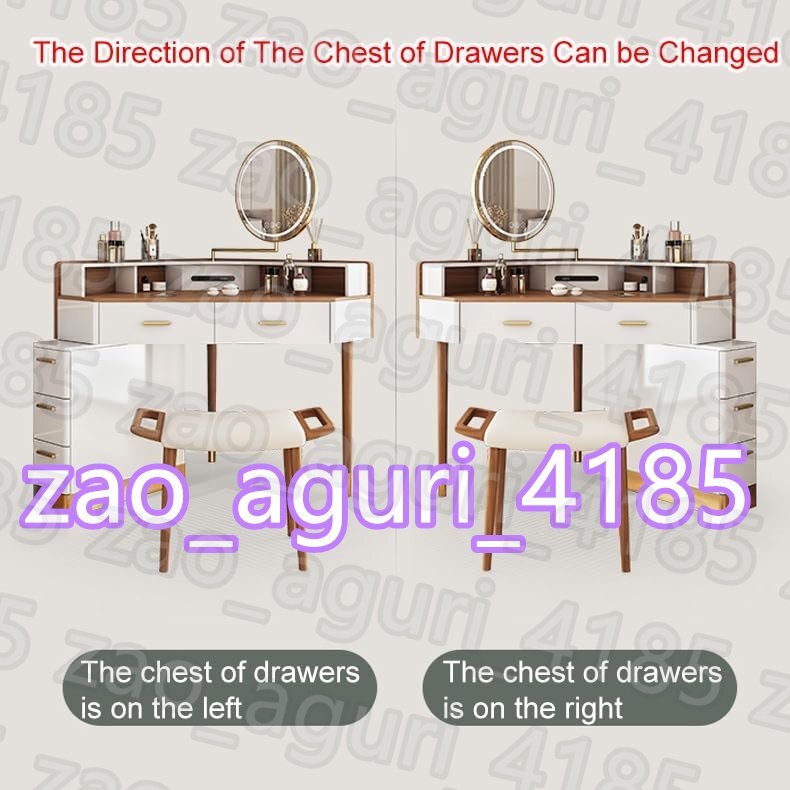スペースが限られている部屋に化粧台を置くのにまだ苦労していませんか? 当社のコーナー化粧台はあなたの問題を完全に解決するかもしれません。 三角形のデザインはどのコーナーにもフィットし、スペースをとらず、化粧や仕事のための広々としたテーブルトップを提供します。シンプルでモダンなスタイルなので、玄関、リビングルーム、書斎、寝室などに最適です。 仕事でも生活でも、十分に目的を果たすことができます。 1つ手に入れるだけで、お金に見合う価値があることがわかるでしょう。特徴・ライト付き可動ミラーはメイクアップの能力を最大限に高め、適切な光の下でより美しく鮮明な自分を見せることができます。 メイクに真剣に取り組む人にとっては必須アイテムであることは間違いありません。・シンプルでモダンなスタイルは、さまざまな装飾に適合します・作業や化粧直しに十分な広さの天板・5つの引き出しで十分な収納スペースを確保・E1グレードの環境保護ボードにより、長期間の耐久性を保証します。・テーブル脚を取り付けるだけですぐにご使用いただけます。・無垢材の脚がしっかりとサポートします。・滑らかで防水性のある表面はお手入れが簡単・様々なシーンに合わせて使える多機能コーナーデスクパッケージ内容:1×コーナーバニティデスク1×化粧スツール1×LEDライトミラー