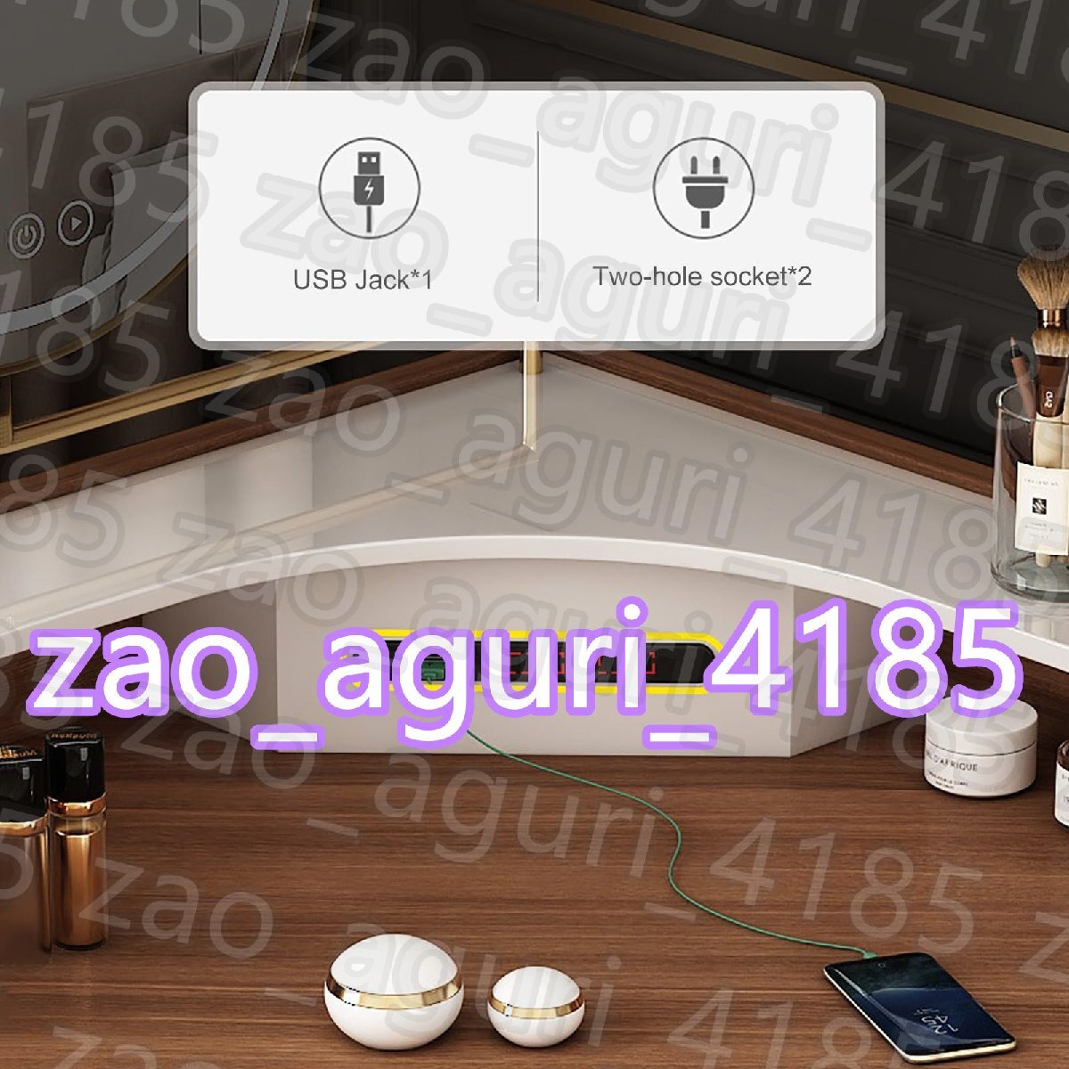 【電源タップ付きコーナーバニティ】このメイクテーブルにはUSBポート1つと電源コンセント2つが装備されています。 ドライヤーやヘアアイロンも使えて便利です。 2 つのコンセントと 2 つの USB ポートを備えたこの狭いエンドテーブルにランプや携帯電話を接続すると、手元に電力が供給されます。